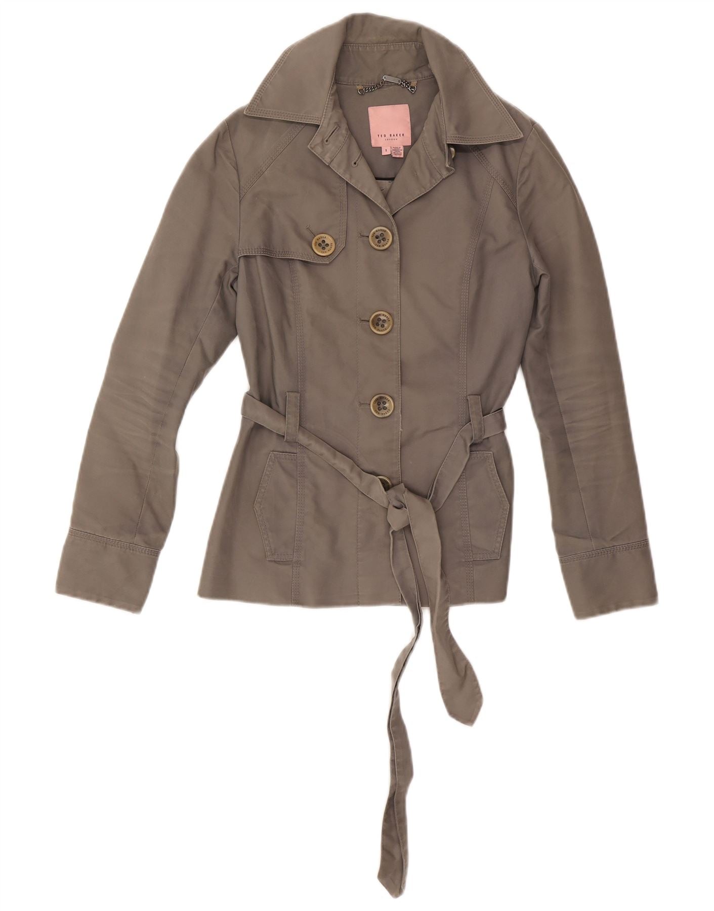 TED BAKER Γυναικεία κοντή καμπαρντίνα Μέγεθος 1 XS Γκρι βαμβακερό