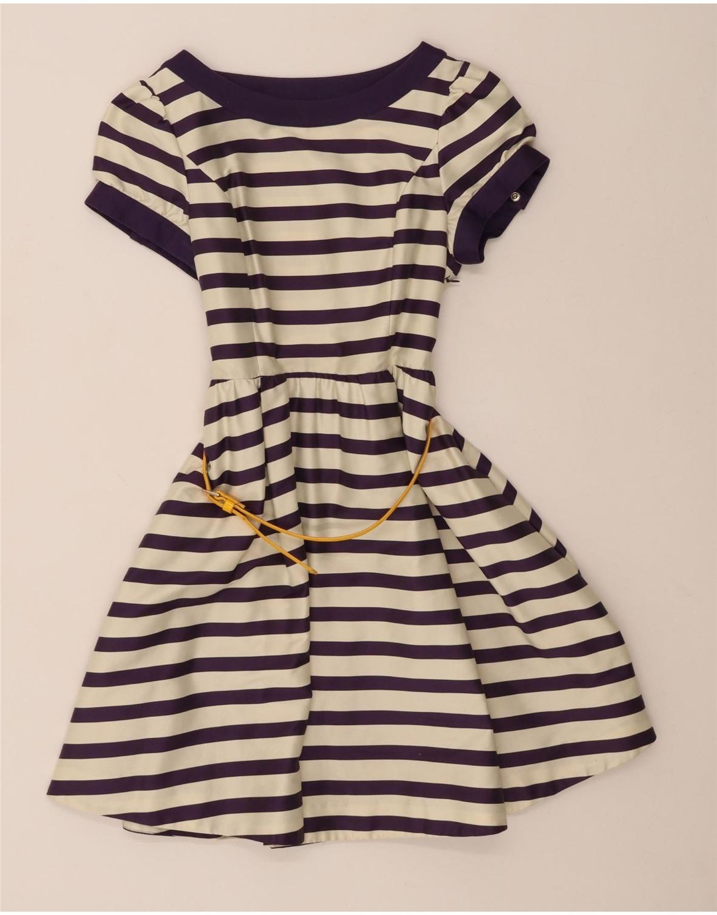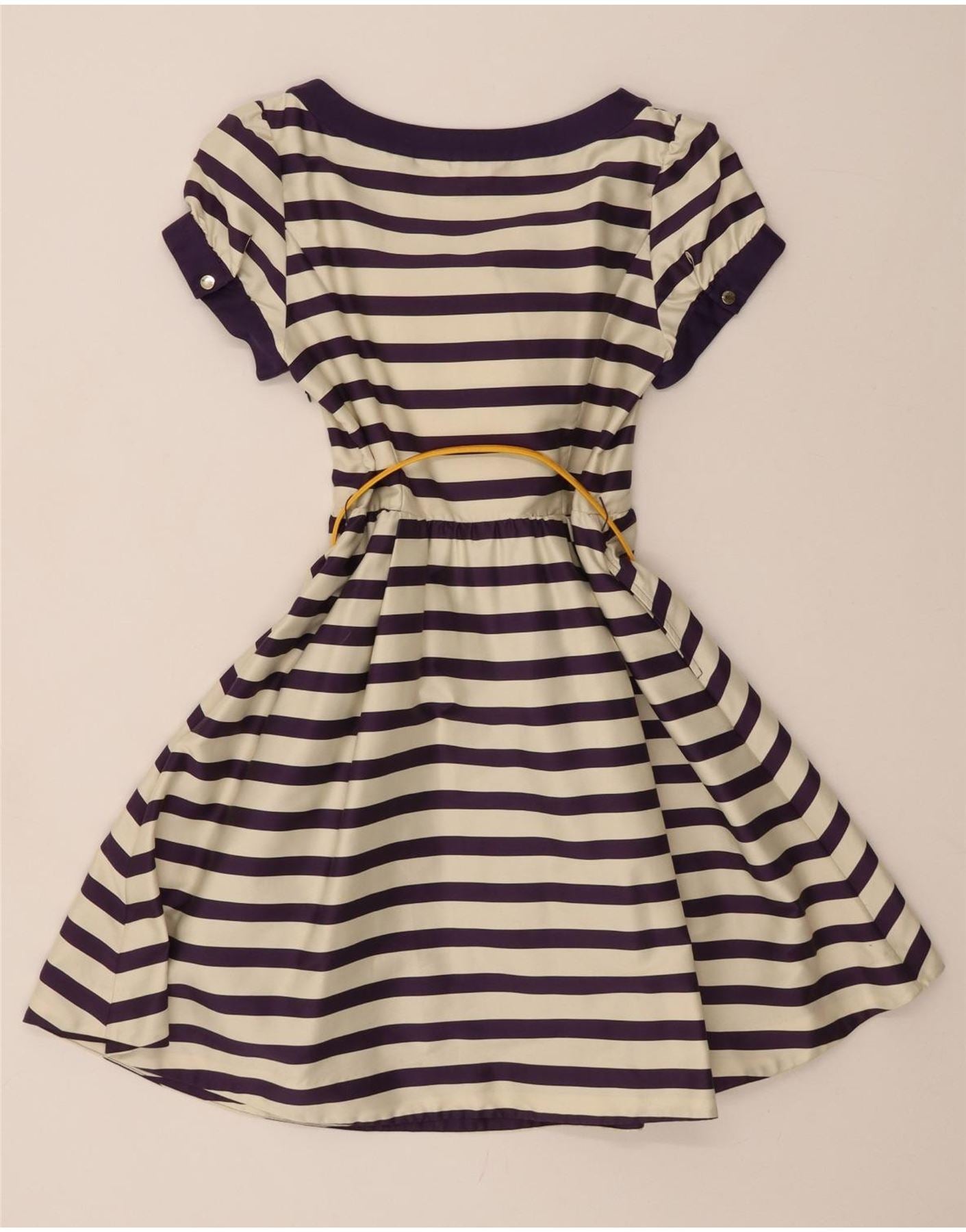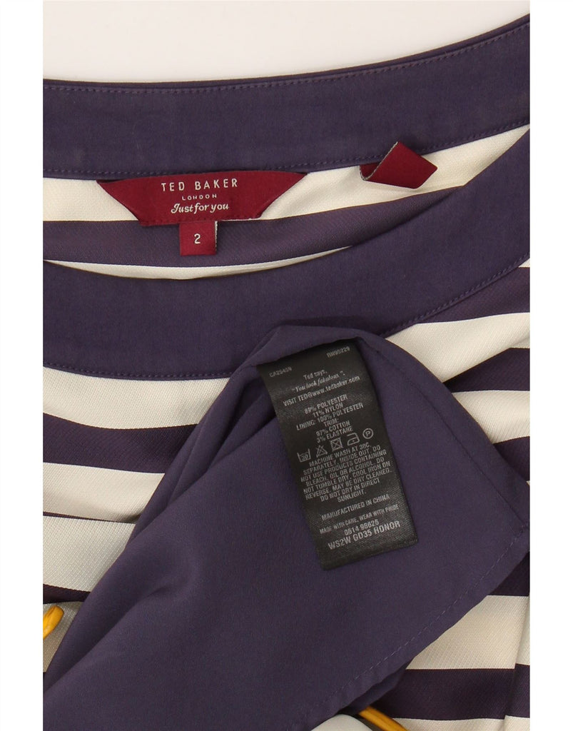 TED BAKER Womens Swing Dress Size 2 Small Navy Blue Striped Polyester