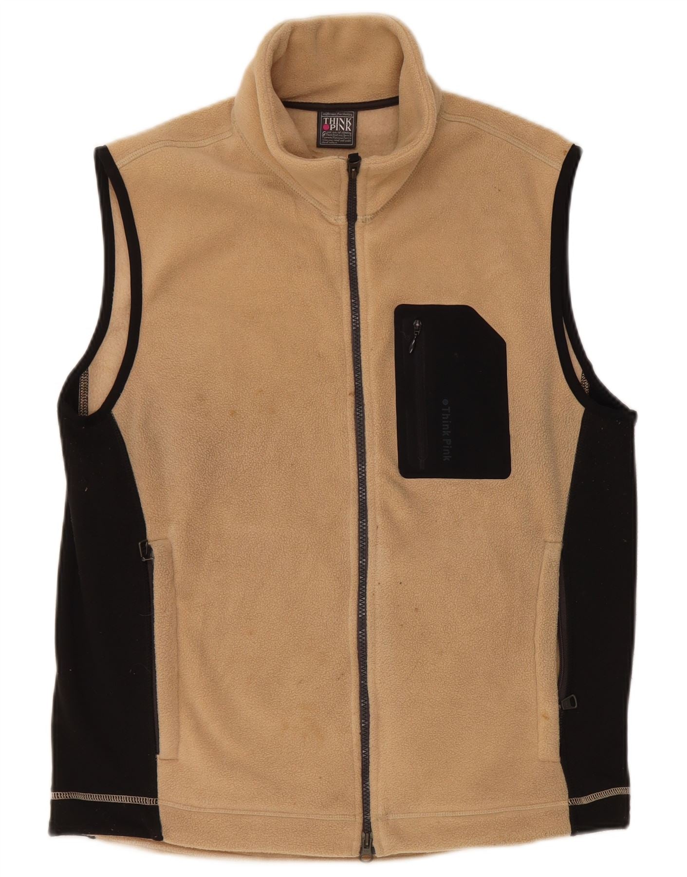 THINK PINK Mens Fleece Gilet UK 38 Medium Beige Colourblock Polyester