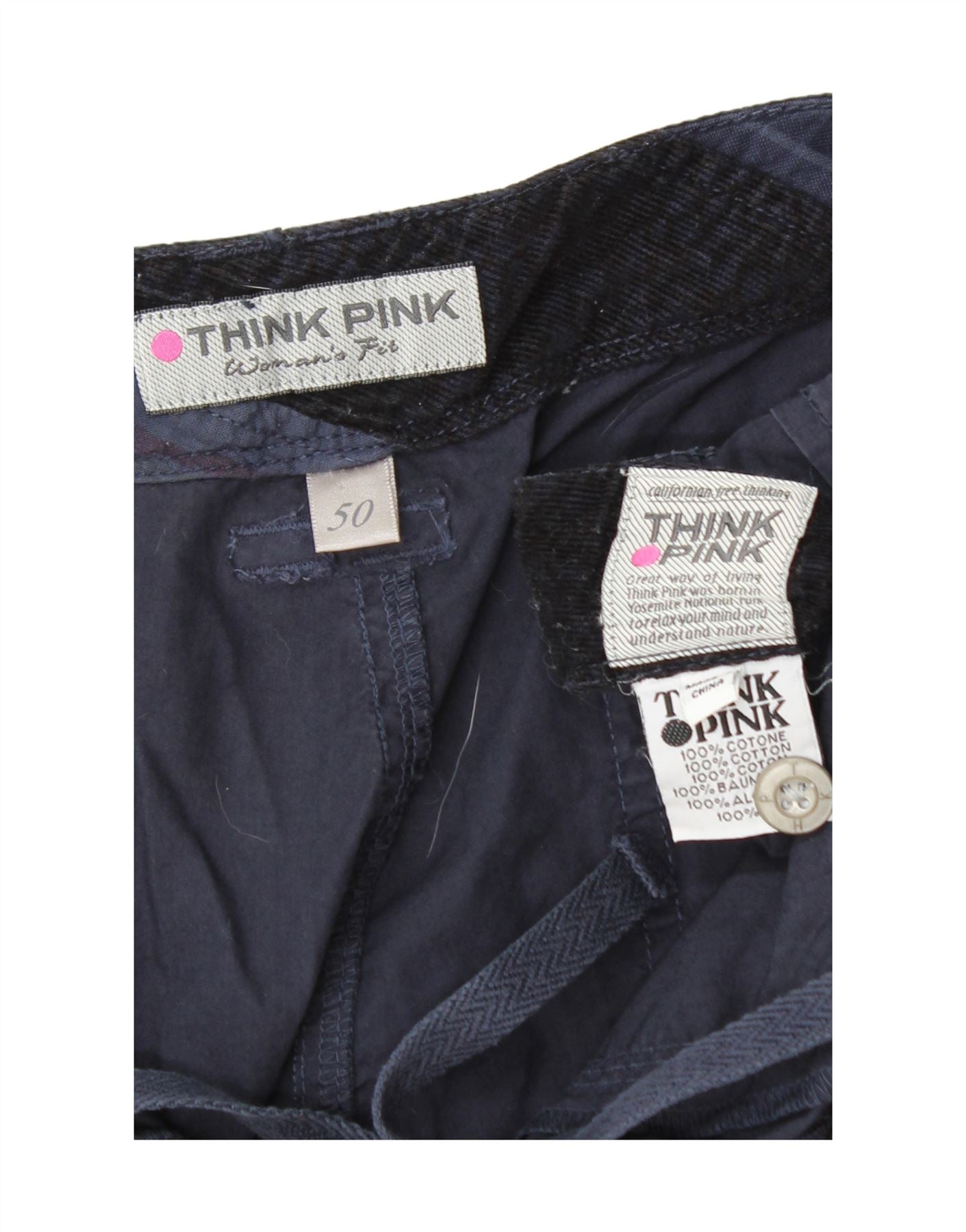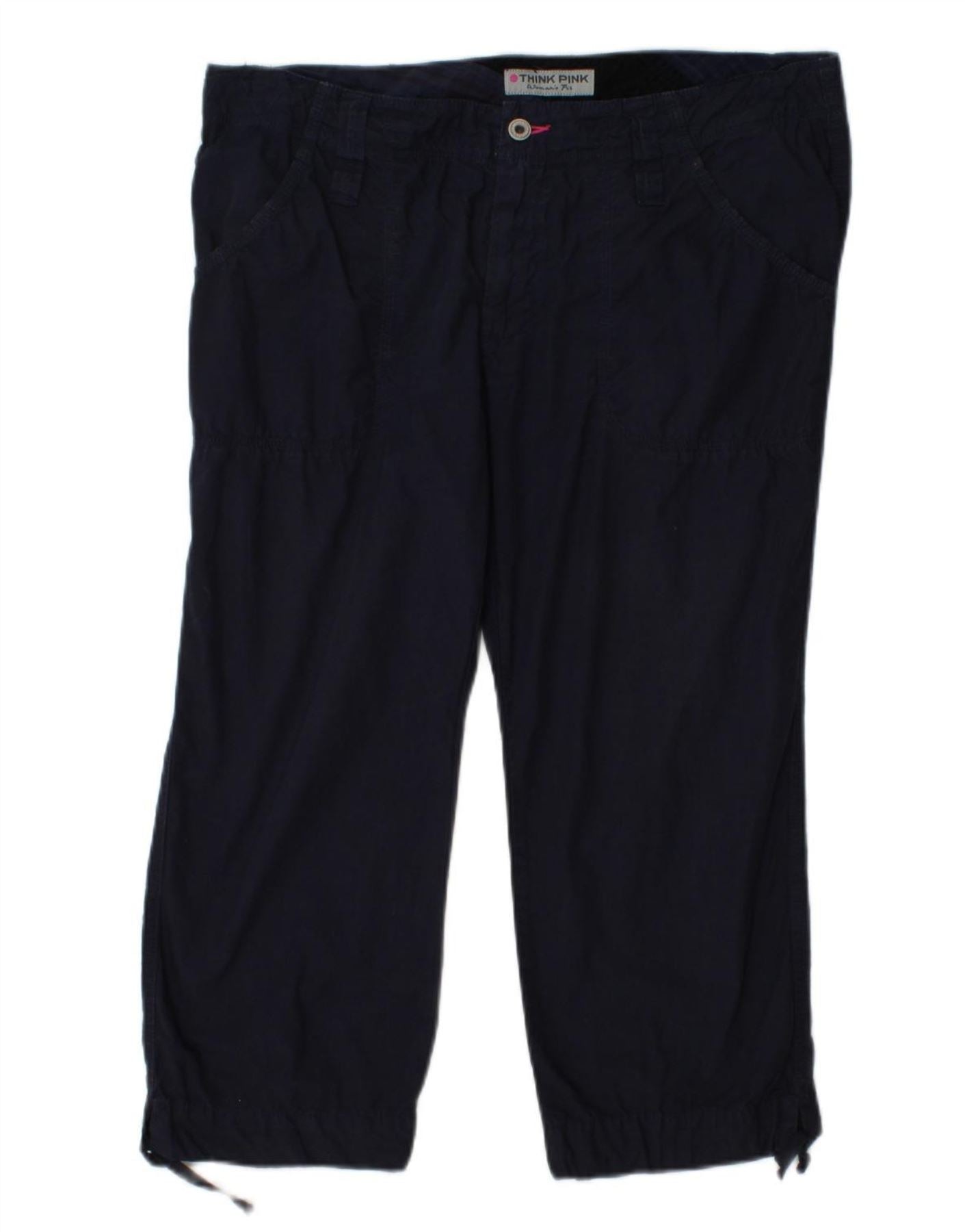 THINK PINK Womens Straight Capri Trousers IT 50 XL W36 L22 Navy Blue