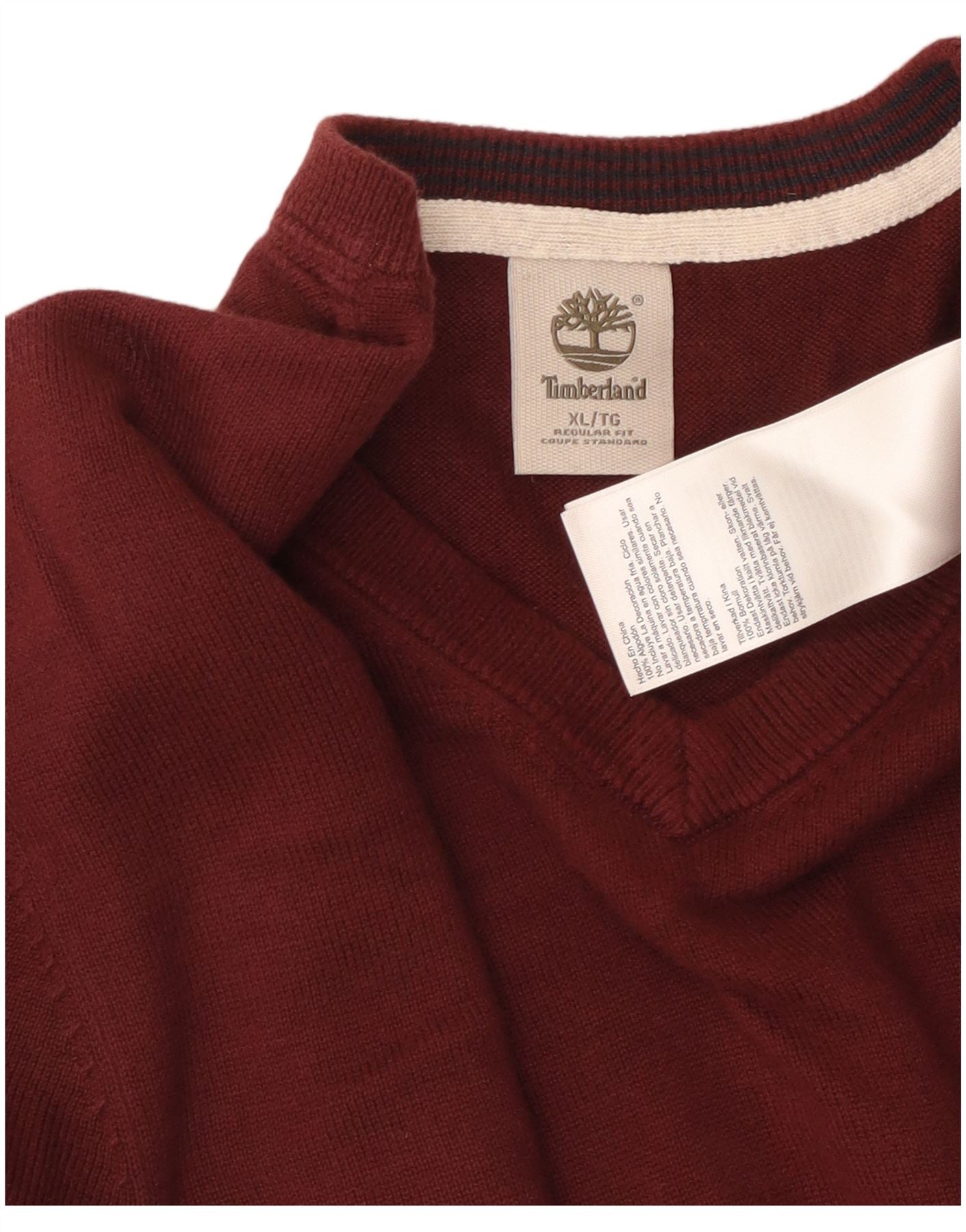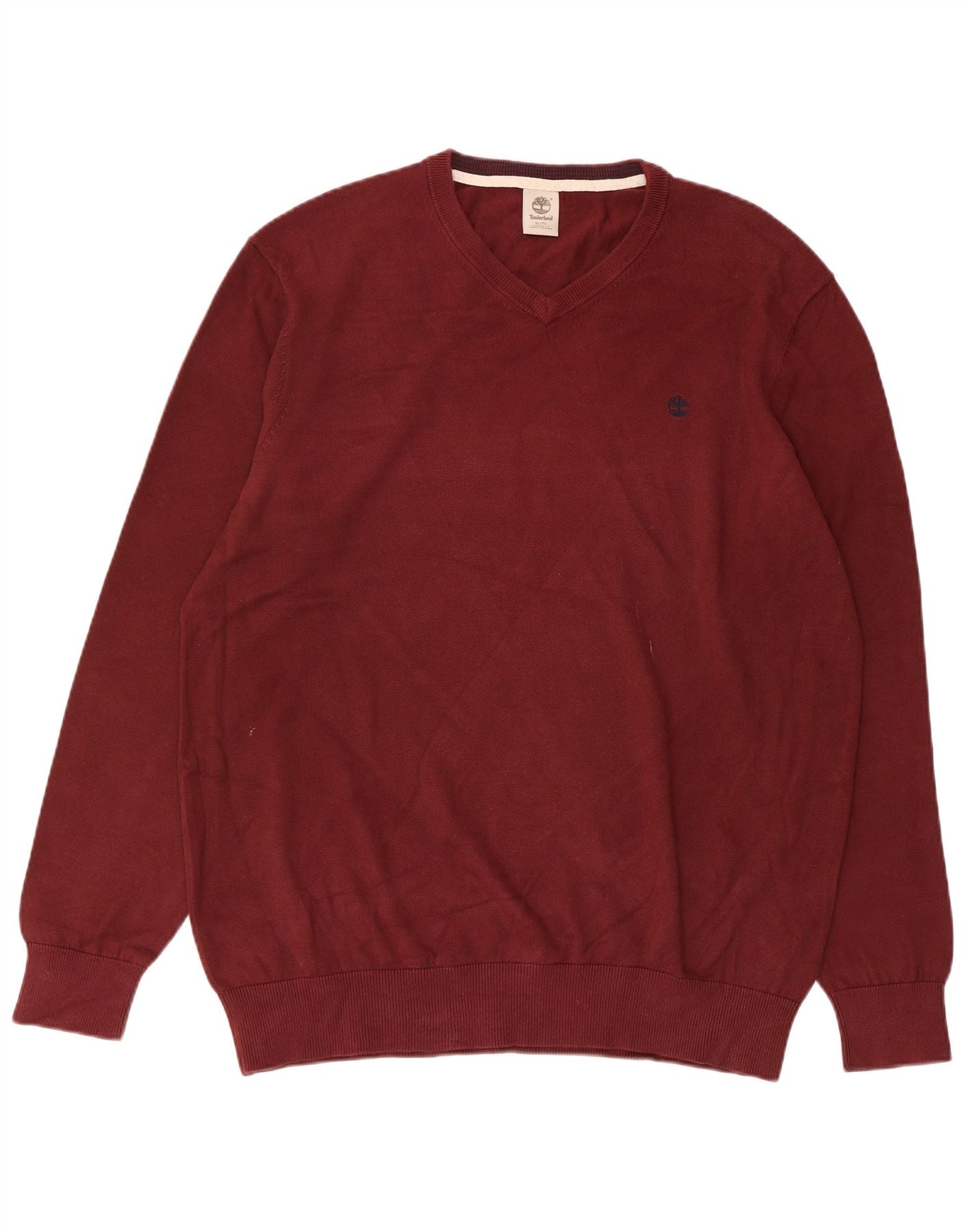 TIMBERLAND Ανδρικό πουλόβερ με κανονική εφαρμογή σε V λαιμόκοψη XL βαμβακερό μπορντό