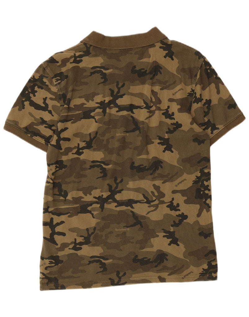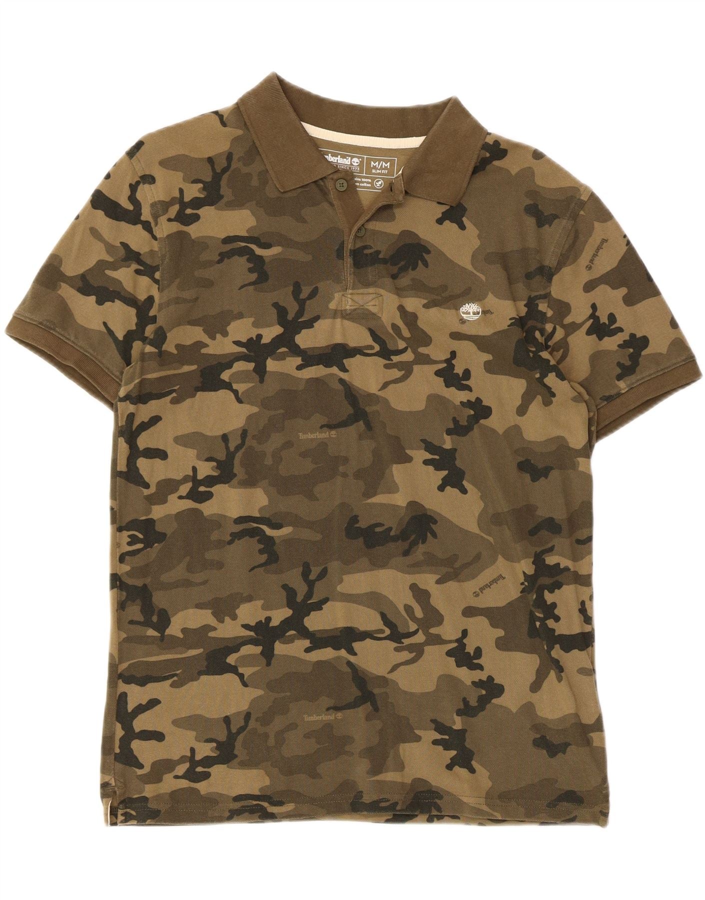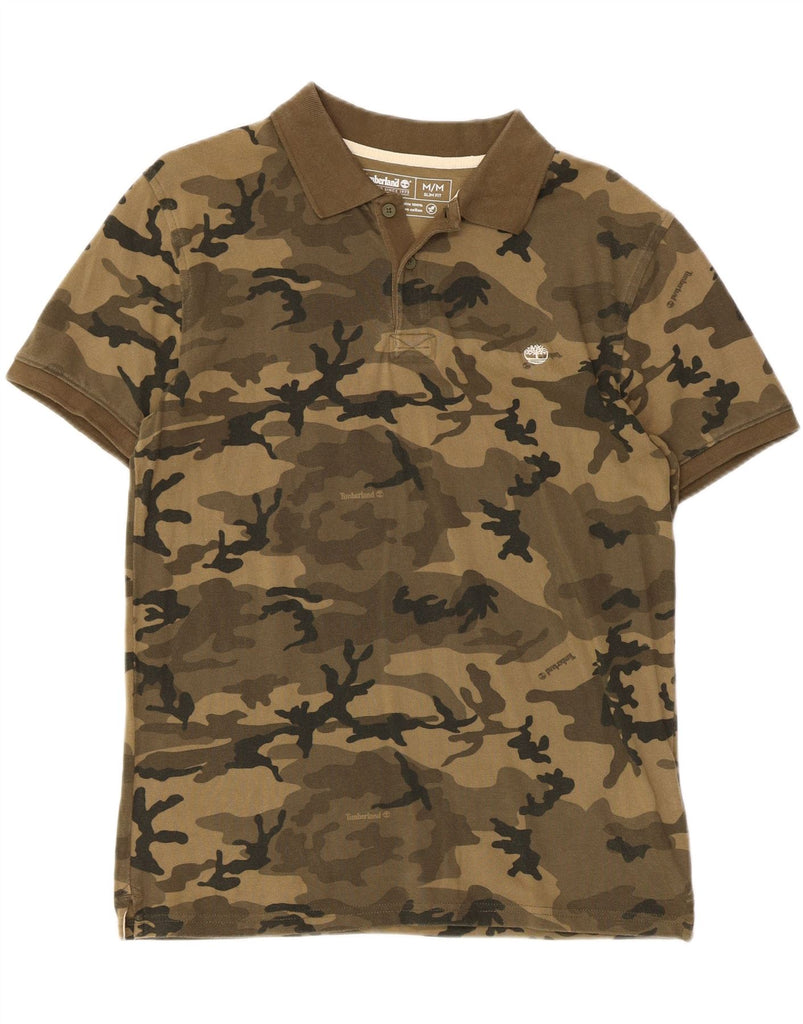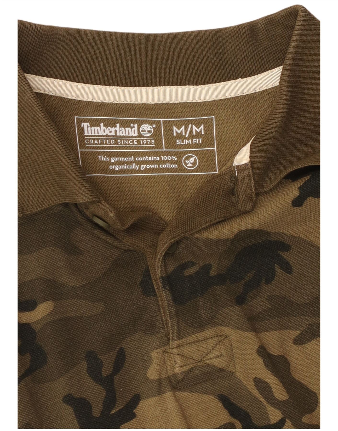 TIMBERLAND Mens Slim Fit Polo Shirt Medium Khaki Camouflage Cotton