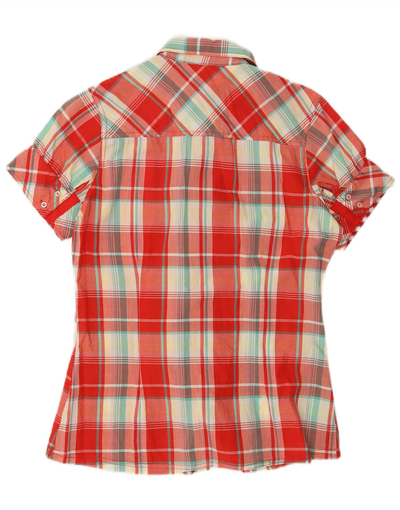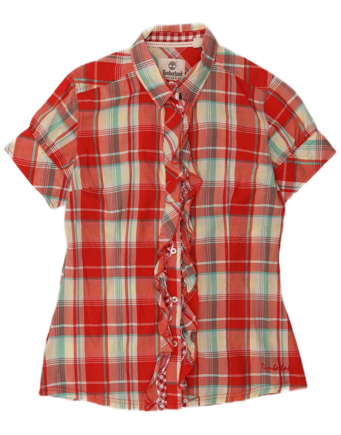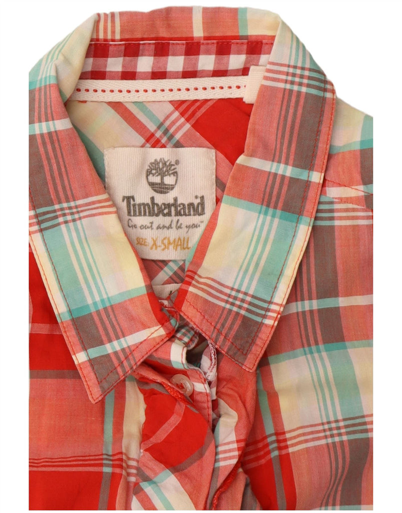 TIMBERLAND Womens Overshirt Ruffle Front Shirt UK 6 XS Red Check