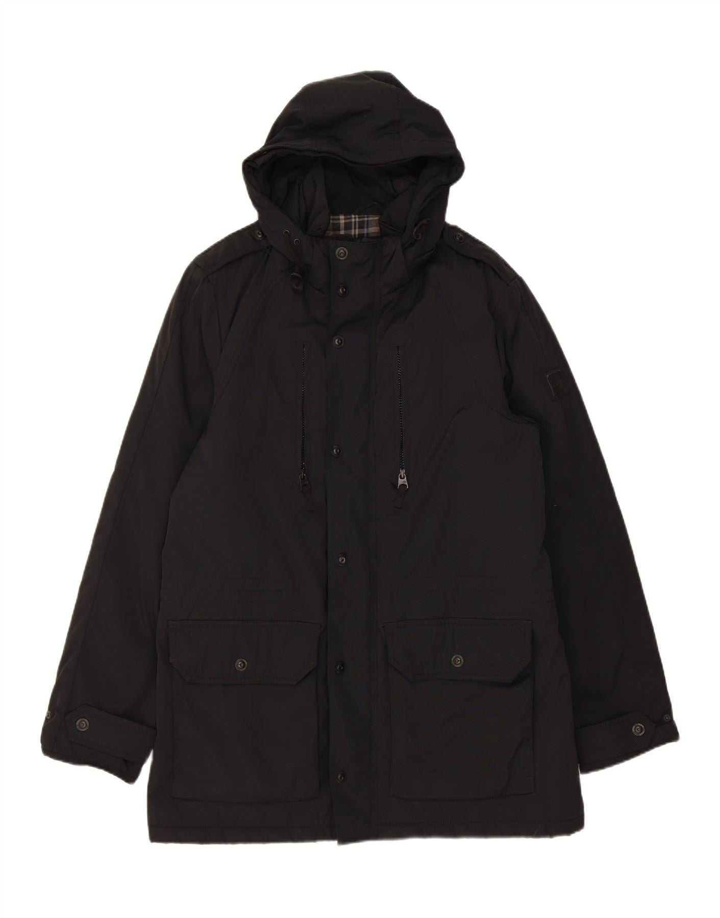 TOM TAILOR Mens Military Hooded Windbreaker Coat UK 40 Large Black