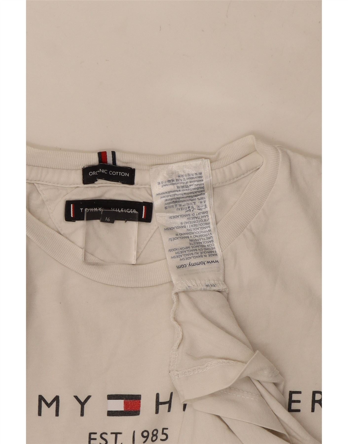Γραφικό μπλουζάκι για αγόρι TOMMY HILFIGER Τοπ 15-16 ετών λευκό βαμβακερό