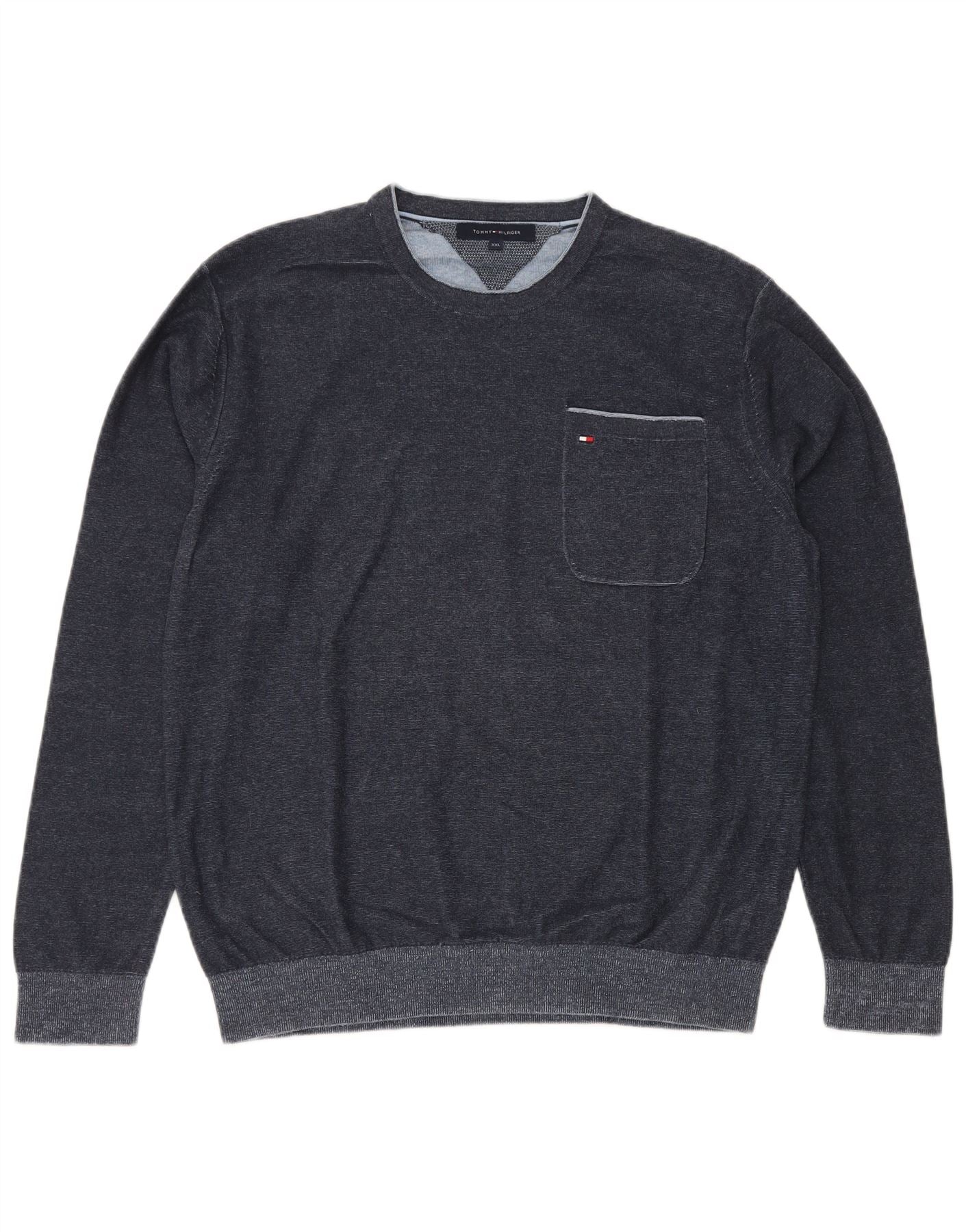 TOMMY HILFIGER Ανδρικό πουλόβερ με λαιμόκοψη 2XL μπλε βαμβακερό