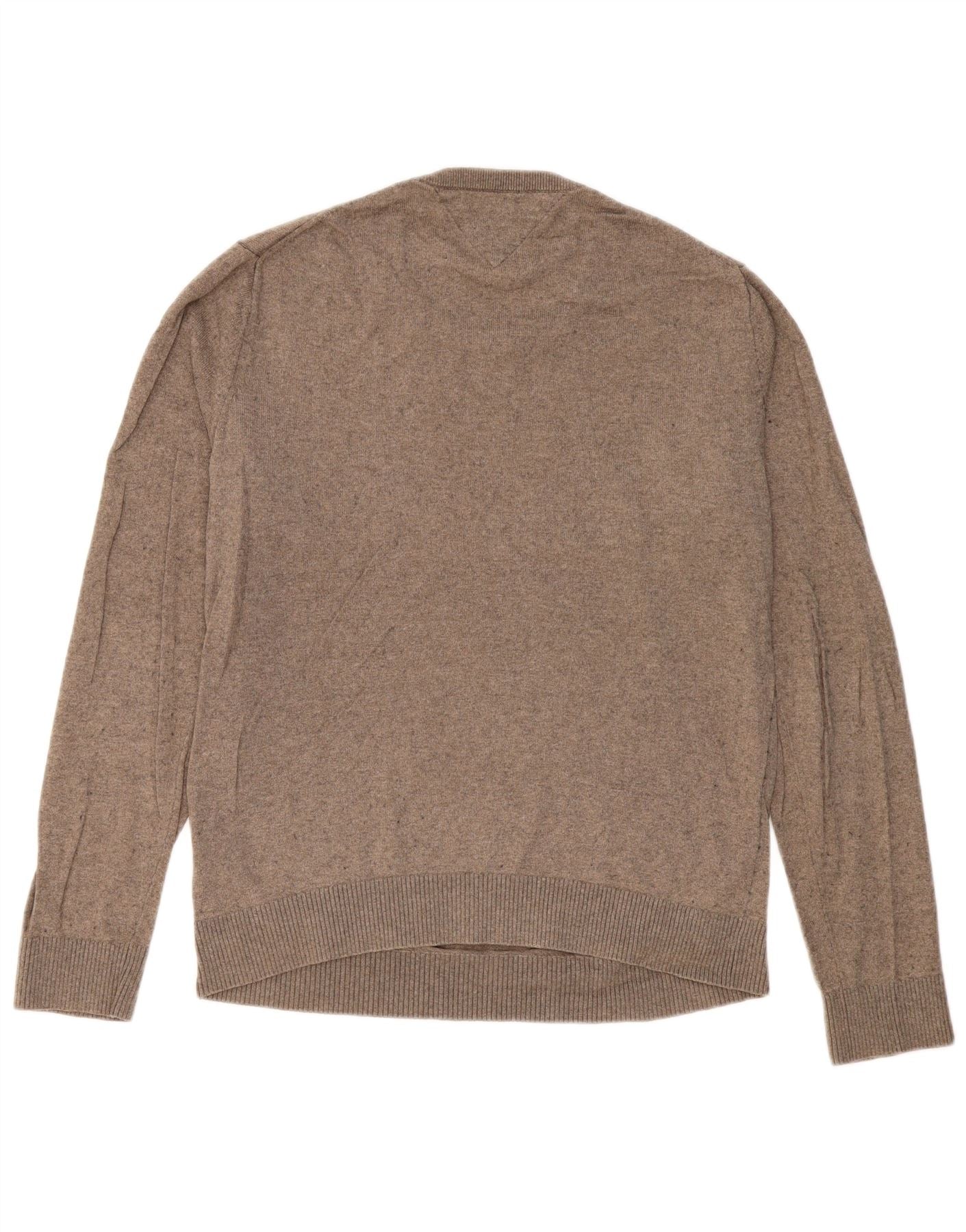 TOMMY HILFIGER Ανδρικό πουλόβερ με λαιμόκοψη, μεγάλο καφέ βαμβακερό