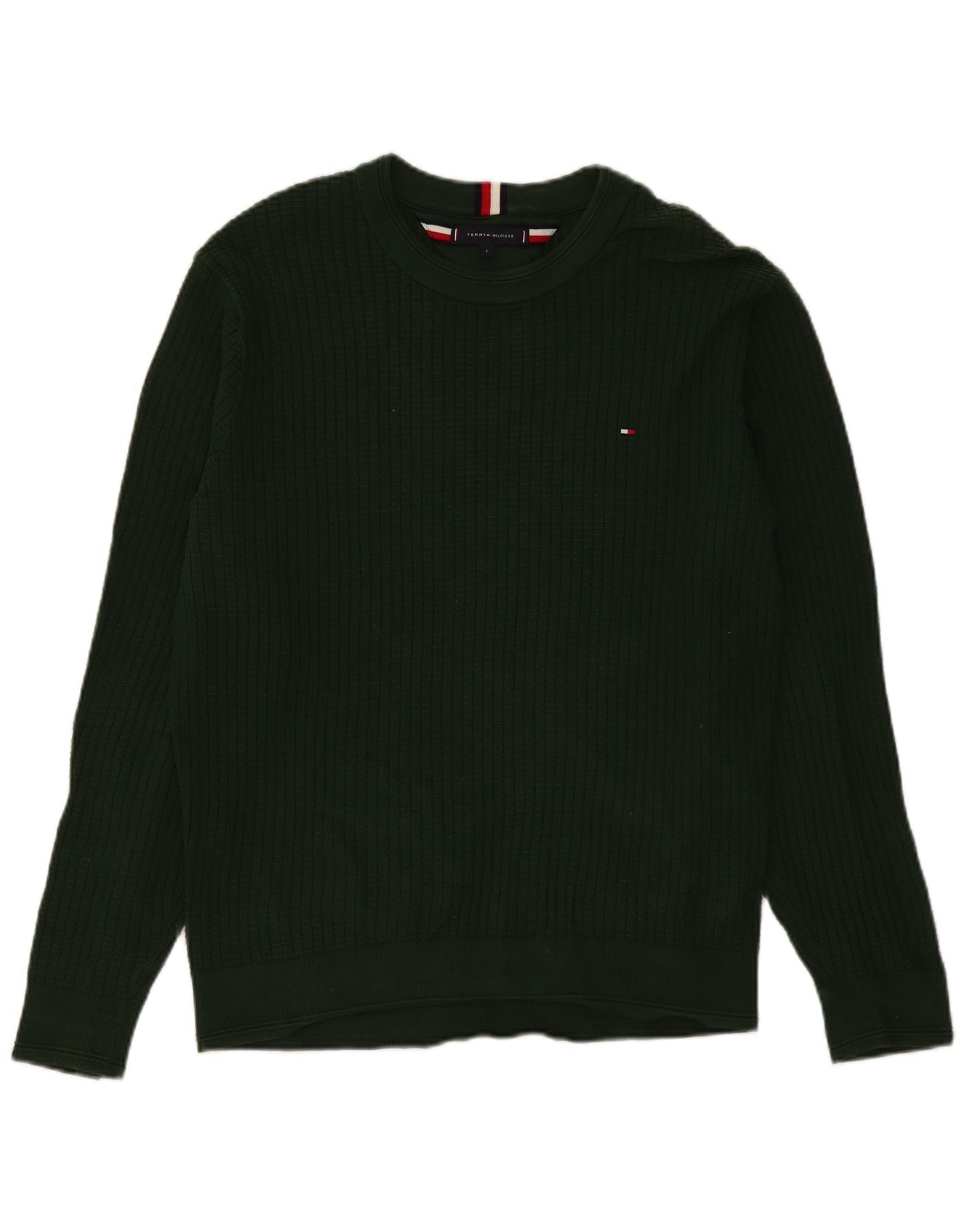 TOMMY HILFIGER Ανδρικό πουλόβερ με λαιμόκοψη, μεγάλο πράσινο βαμβακερό