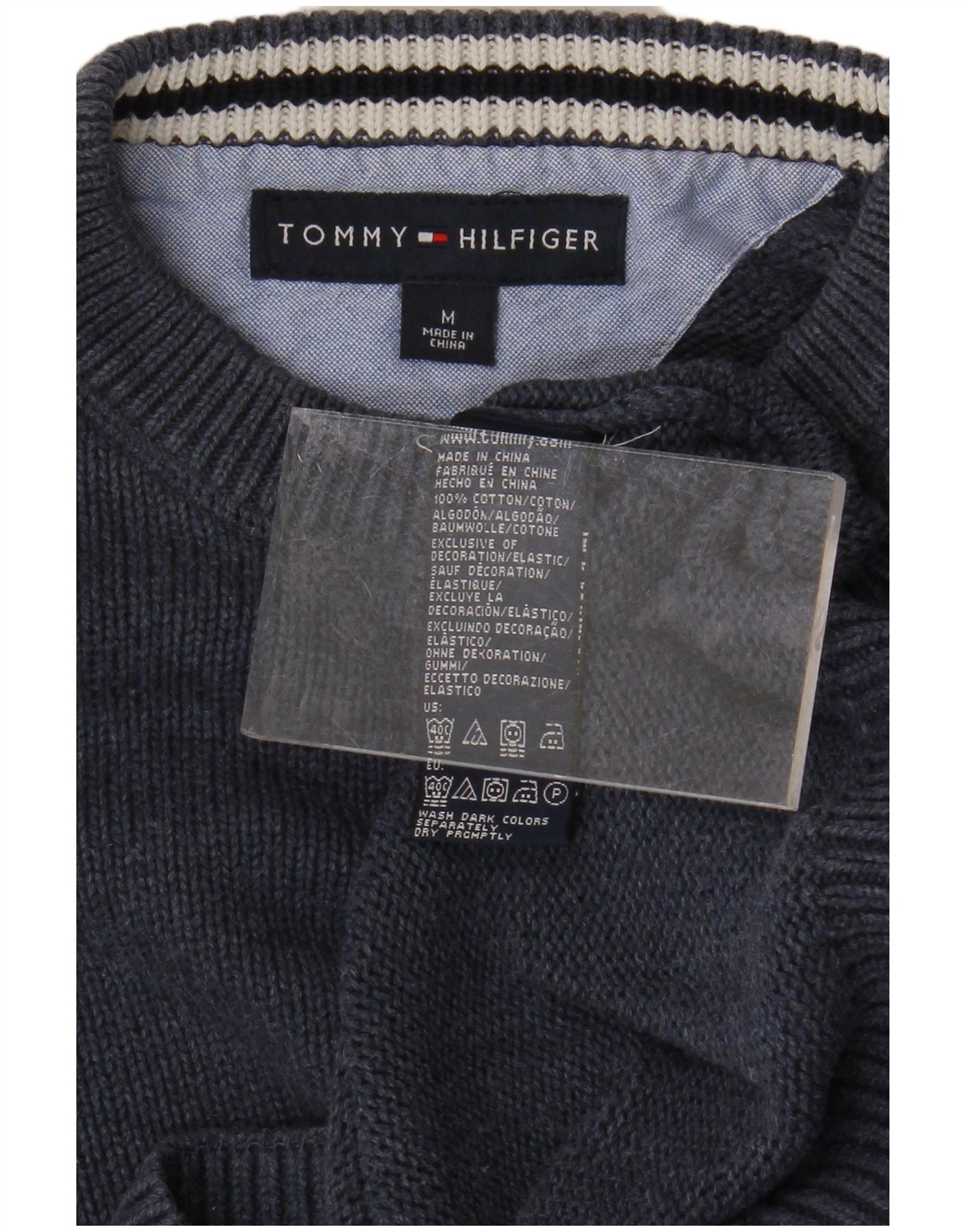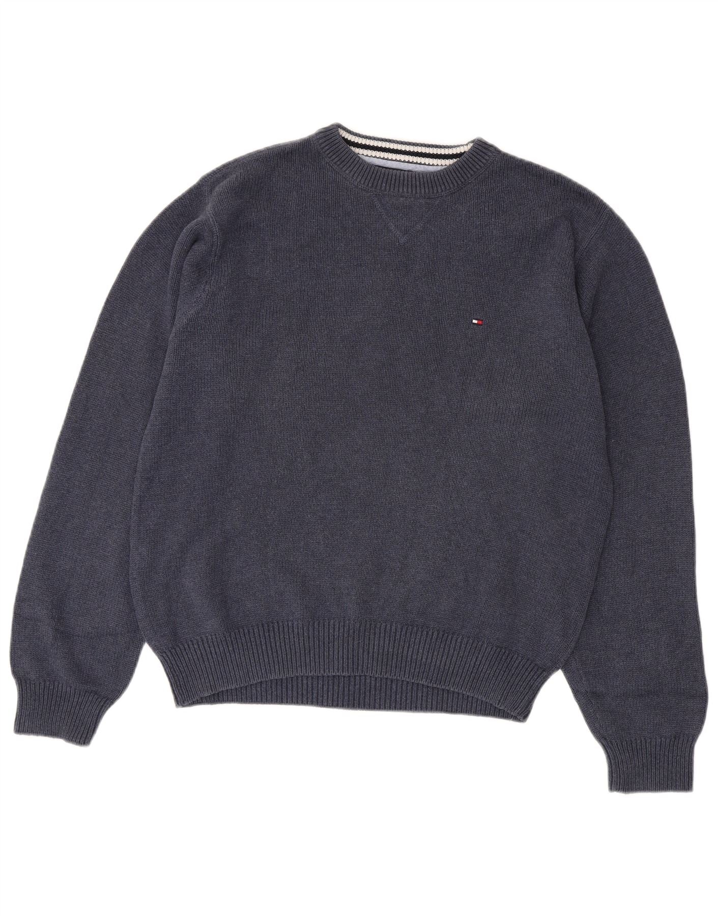 TOMMY HILFIGER Ανδρικό πουλόβερ με λαιμόκοψη, μεσαίο μπλε βαμβακερό