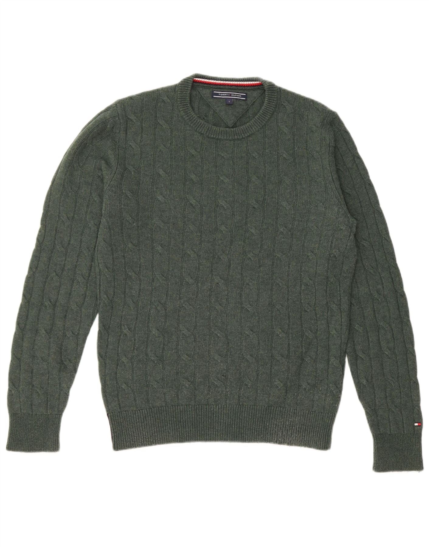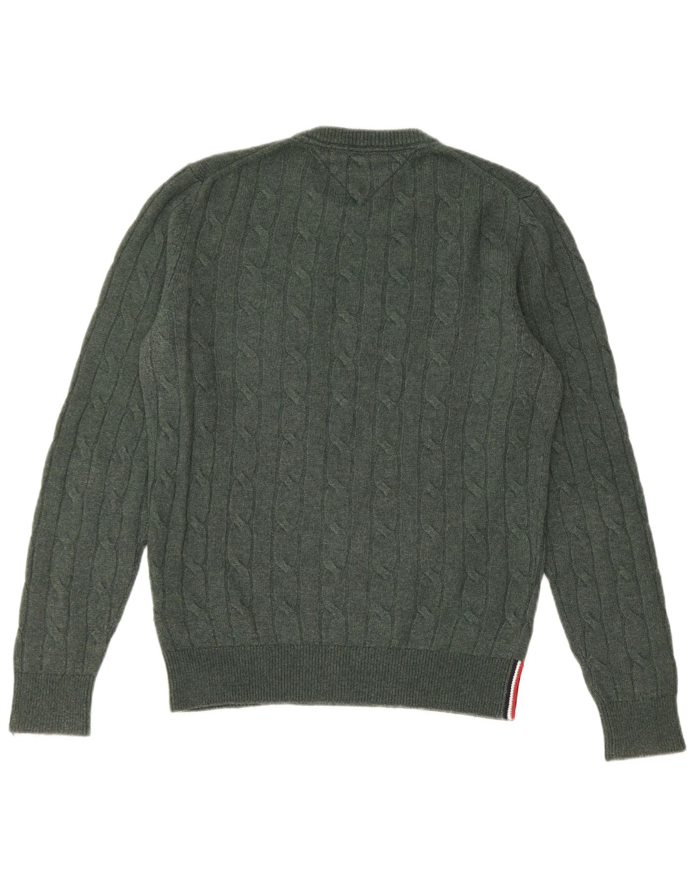 TOMMY HILFIGER Ανδρικό πουλόβερ με λαιμόκοψη από μικρό πράσινο μαλλί