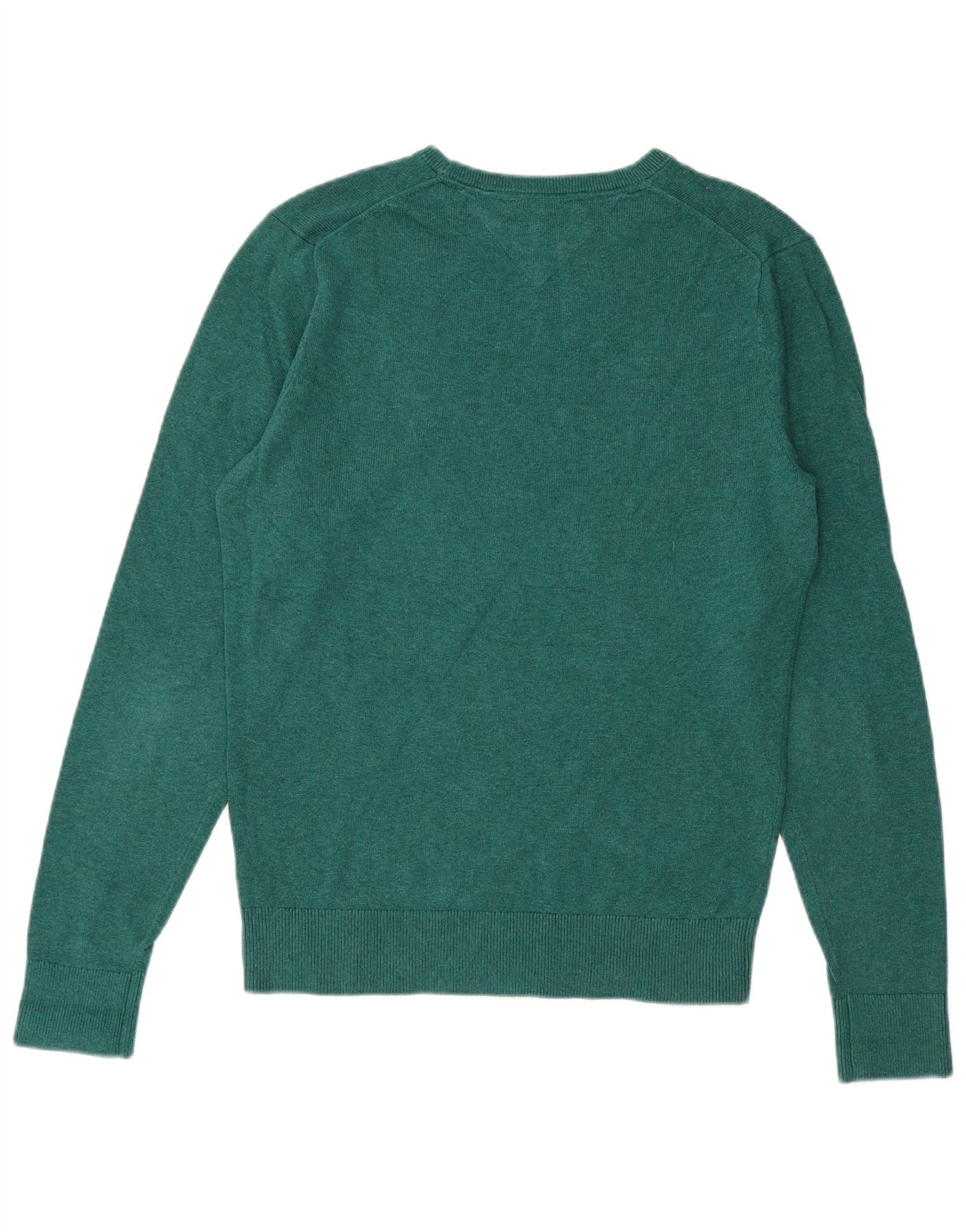 TOMMY HILFIGER Mens Crew Neck Jumper Sweater XS Green Cotton