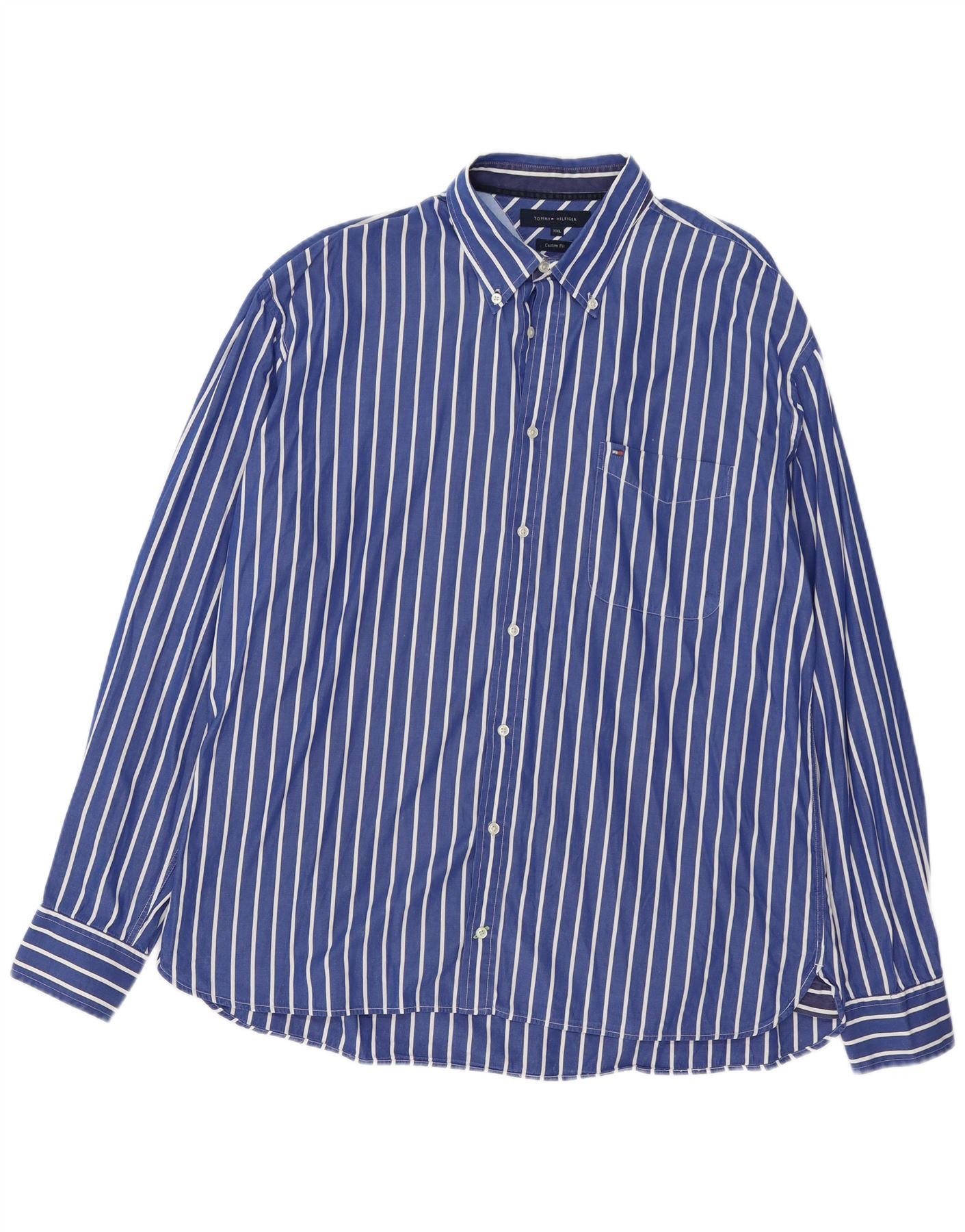 TOMMY HILFIGER Ανδρικό πουκάμισο προσαρμοσμένης εφαρμογής 2XL Μπλε ριγέ βαμβακερό