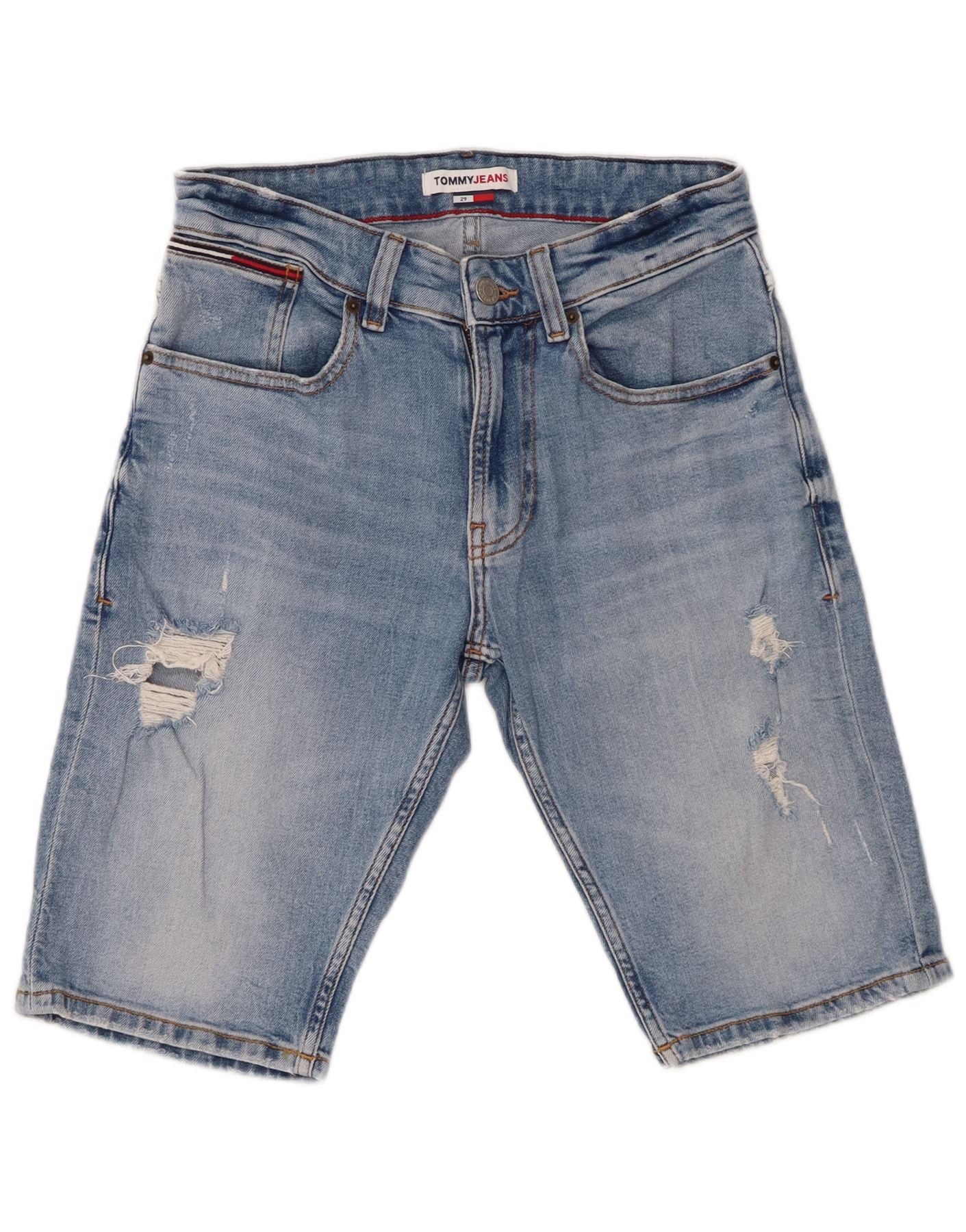 Ανδρικό τζιν σορτς TOMMY HILFIGER ταλαιπωρημένο W29 μικρό μπλε