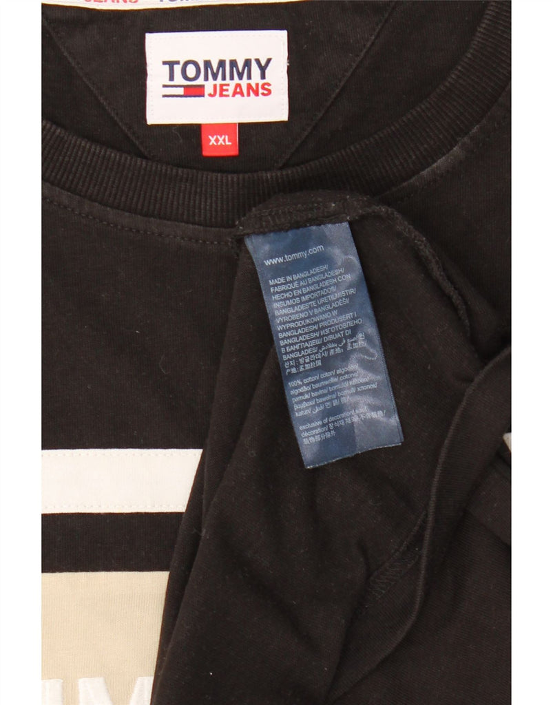 TOMMY HILFIGER Mens Graphic T-Shirt Top 2XL Black Colourblock Cotton