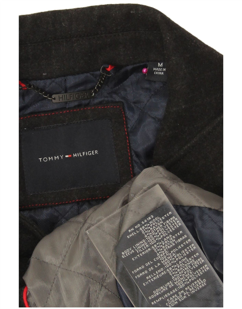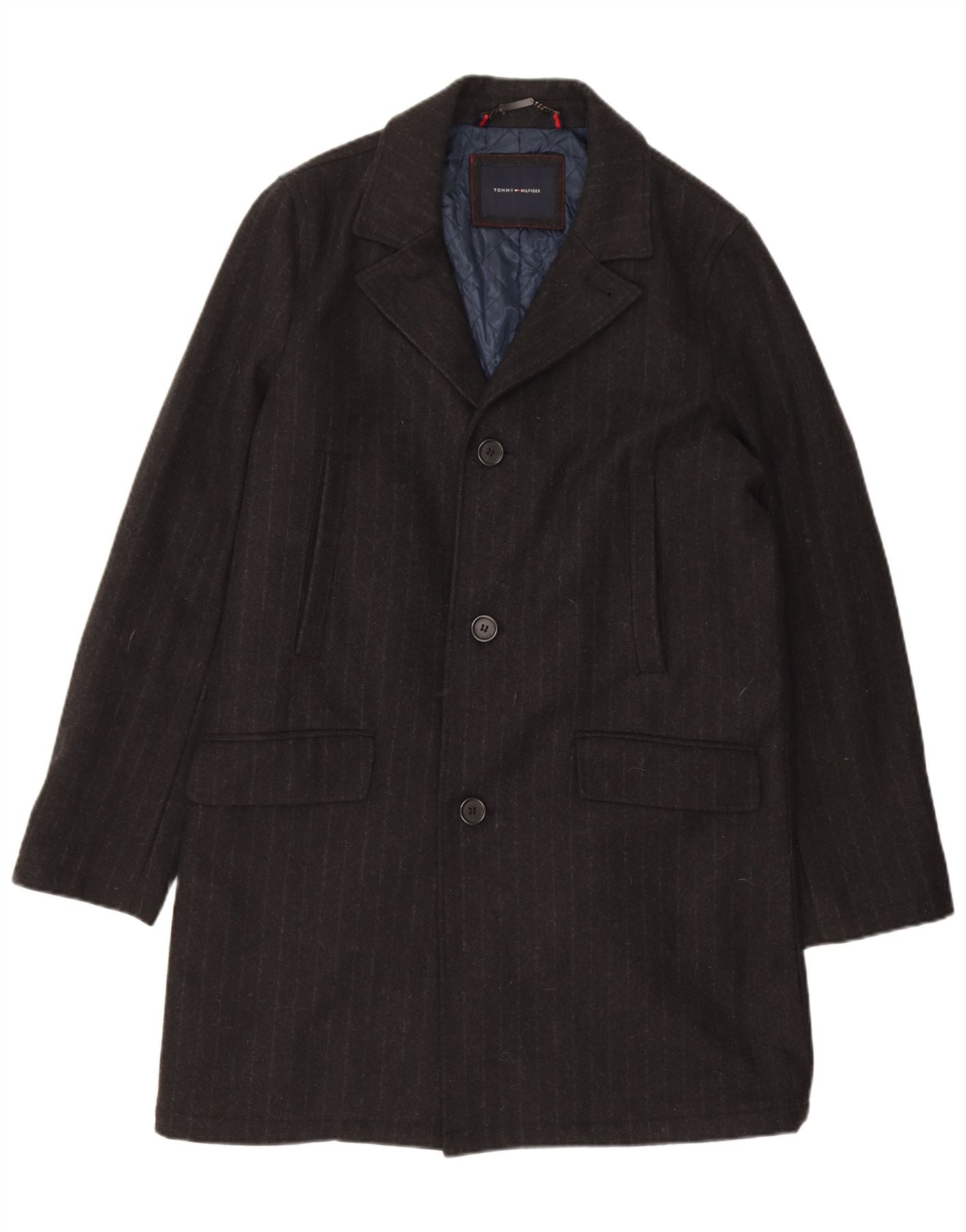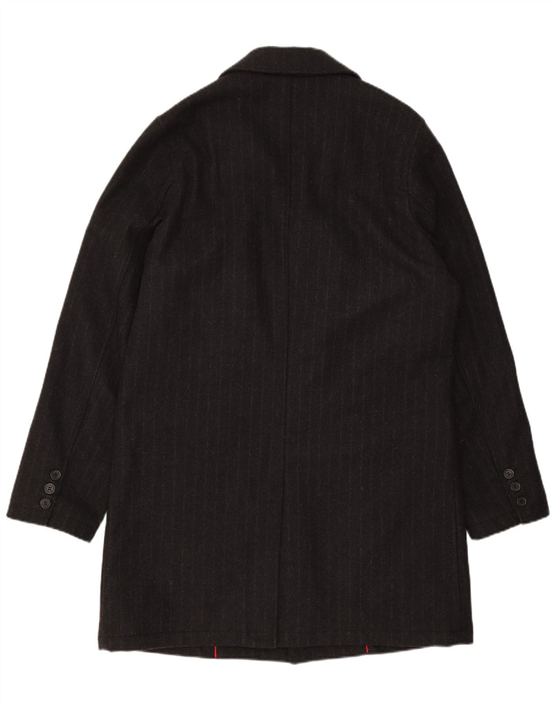 TOMMY HILFIGER Mens Overcoat UK 38 Medium Black Pinstripe Wool