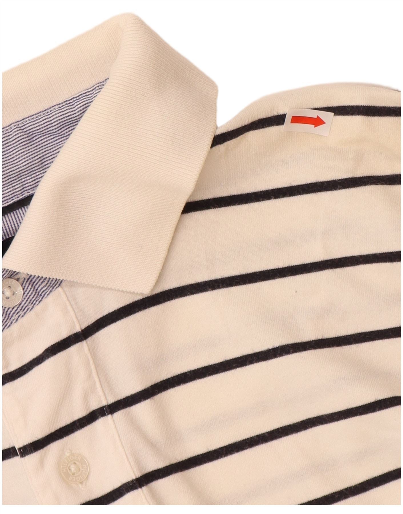 BENETTON Boys Polo Shirt 10-11 Years XL Navy Blue Striped Cotton