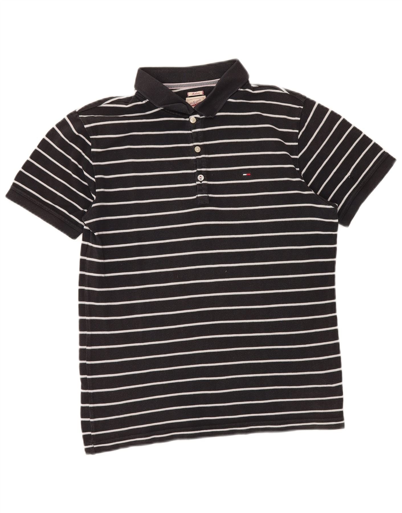 TOMMY HILFIGER Ανδρικό πουκάμισο πόλο μεσαίο μαύρο βαμβακερό ριγέ