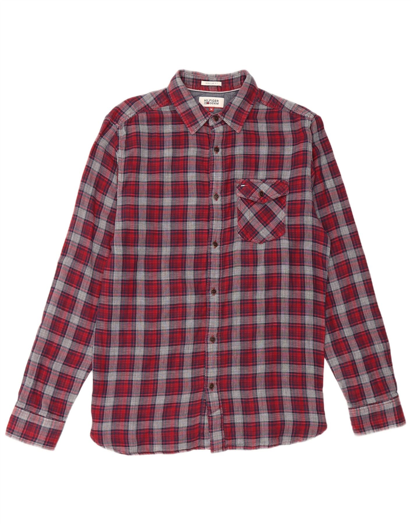 Ανδρικό πουκάμισο Tommy Hilfiger με κανονική εφαρμογή φανελένιο μεσαίο κόκκινο βαμβακερό