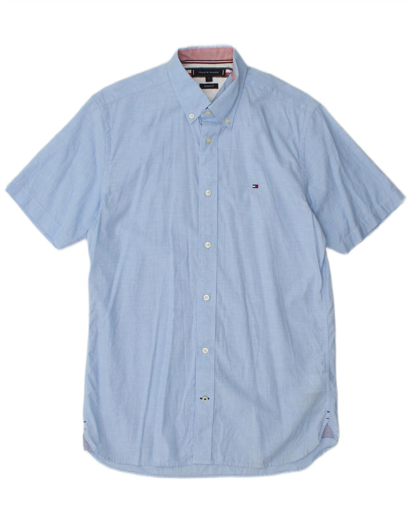 TOMMY HILFIGER Ανδρικό πουκάμισο με κανονική εφαρμογή κοντομάνικο μικρό μπλε βαμβακερό