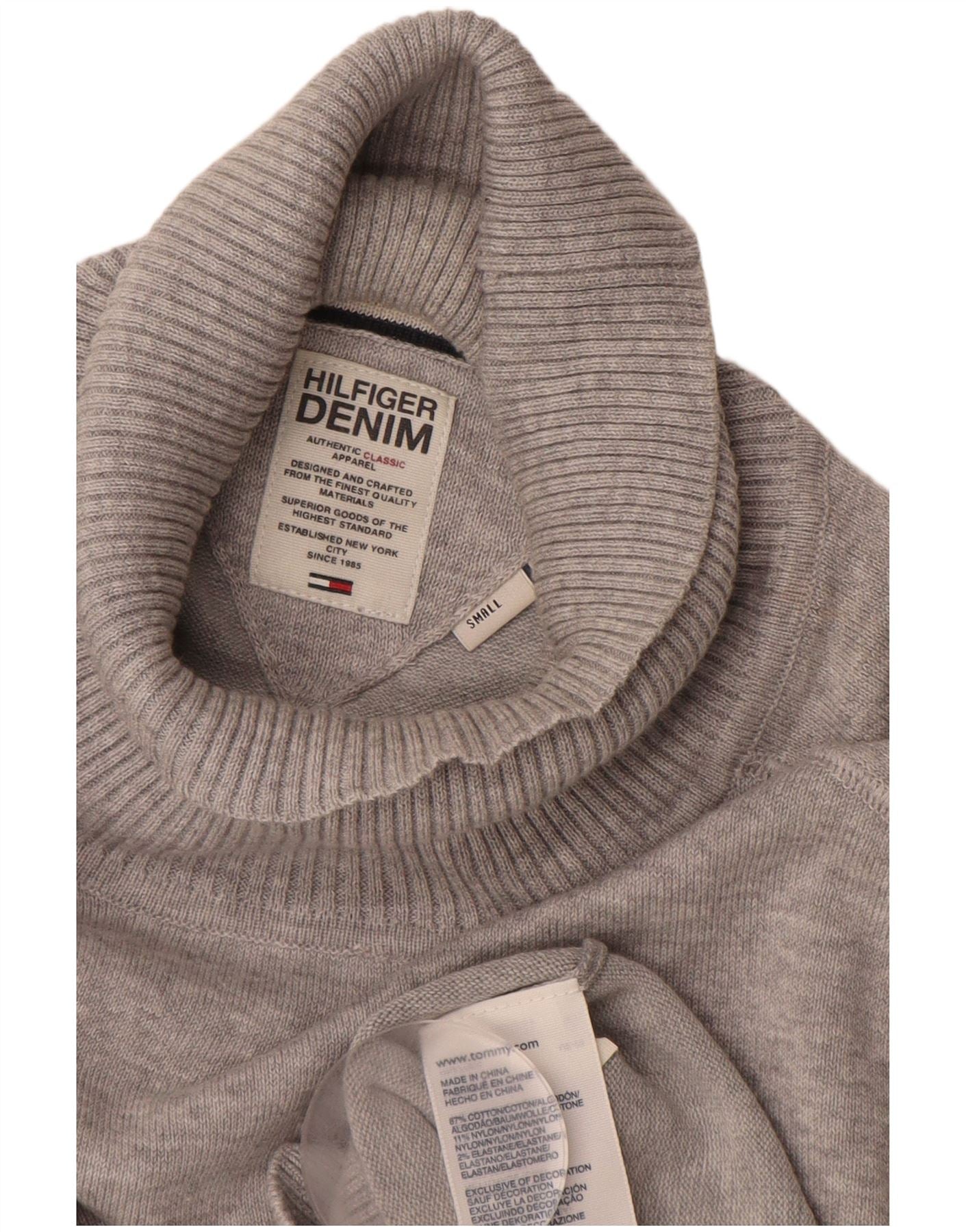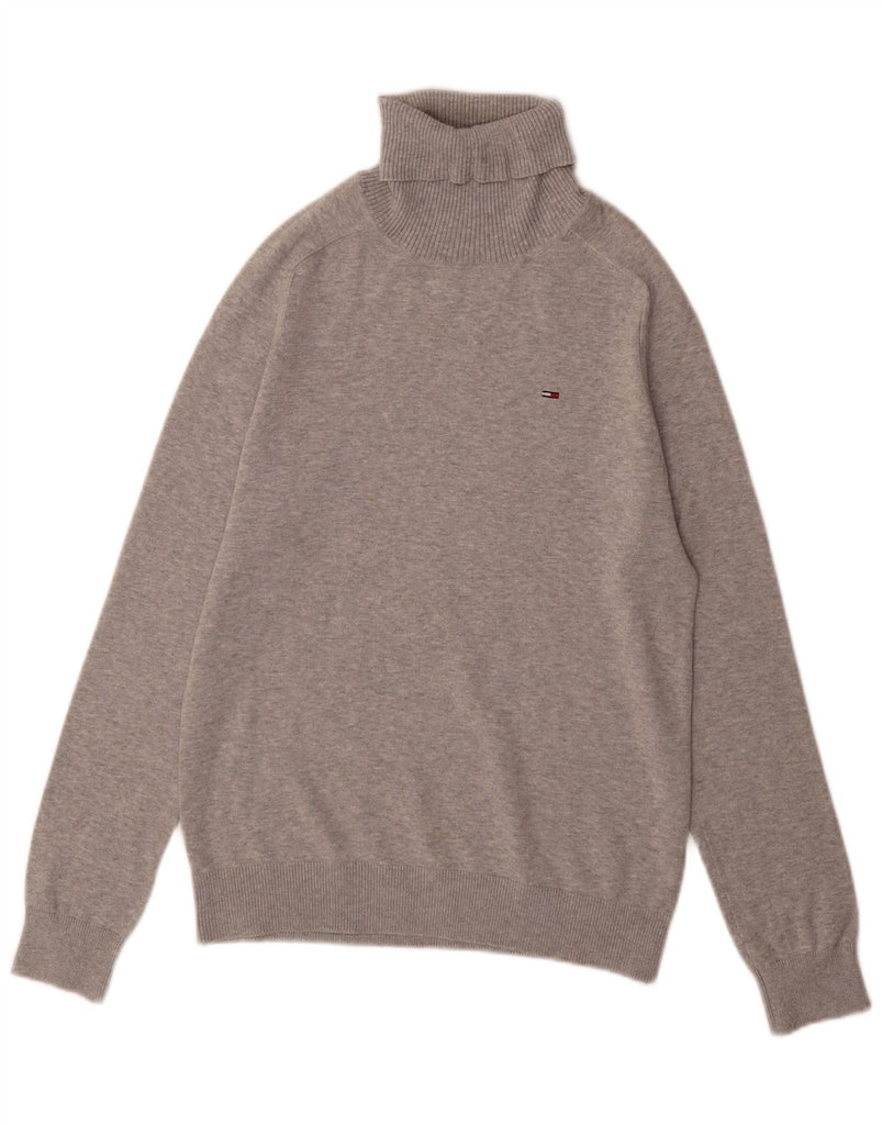TOMMY HILFIGER Mens Roll Neck Jumper Sweater Small Grey Cotton