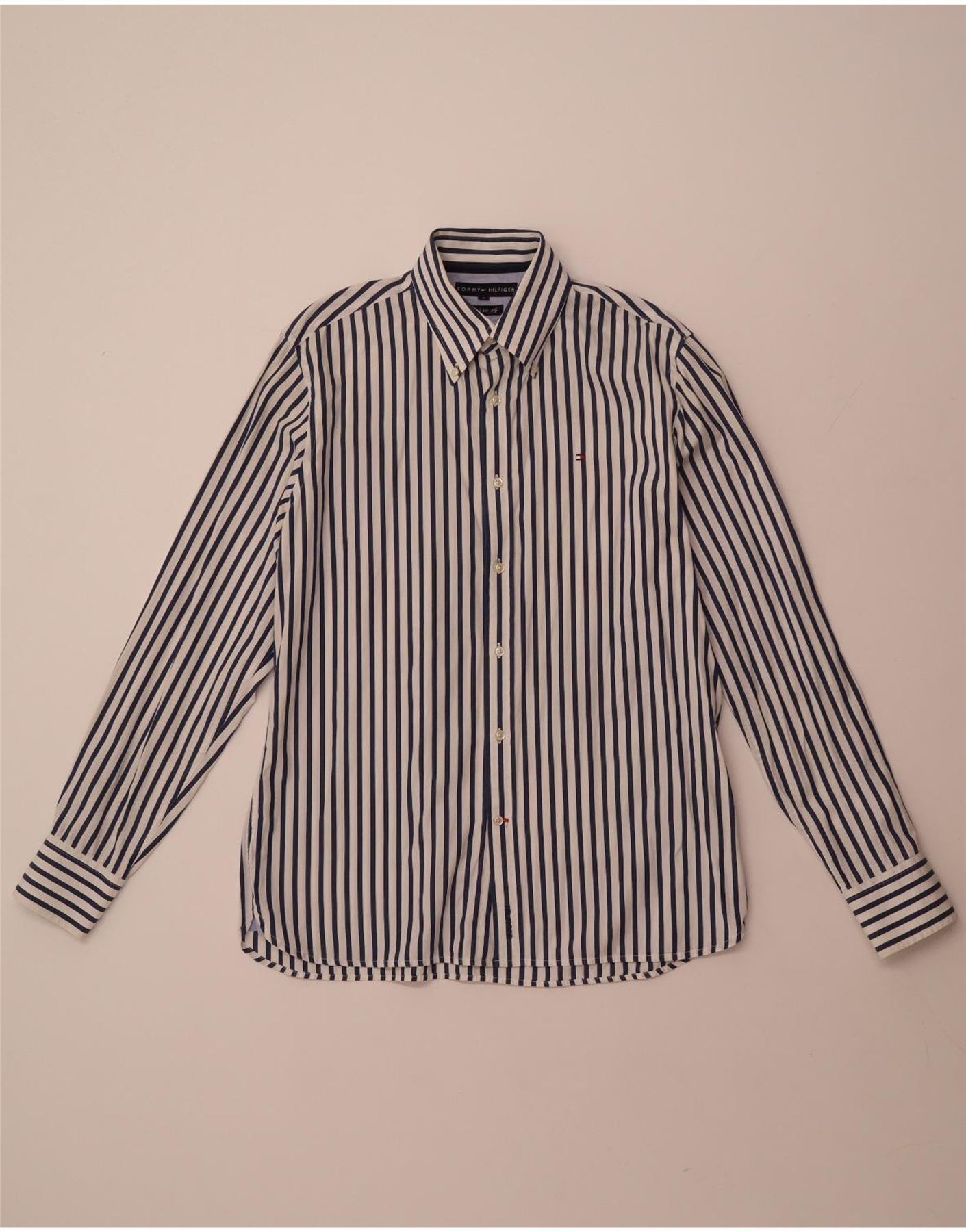 Ανδρικό πουκάμισο TOMMY HILFIGER Βαμβακερό μεσαίο λευκό ριγέ