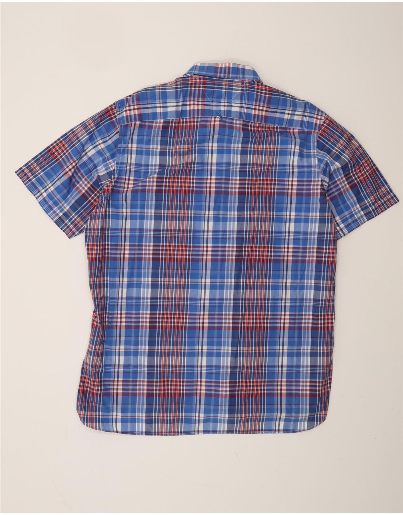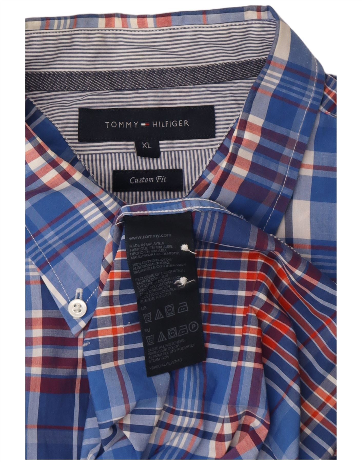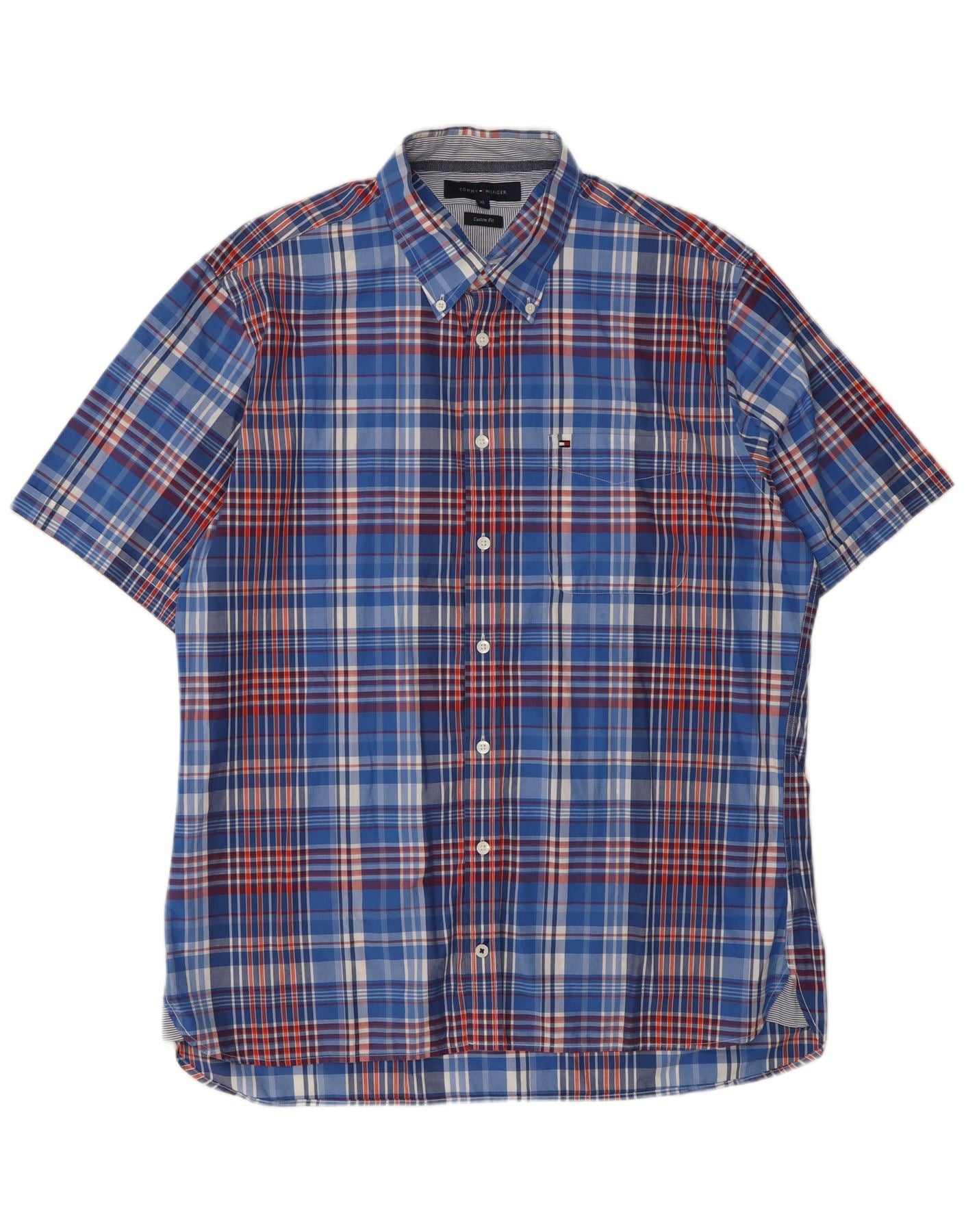 TOMMY HILFIGER Ανδρικό κοντομάνικο πουκάμισο προσαρμοσμένης εφαρμογής XL μπλε καρό βαμβακερό