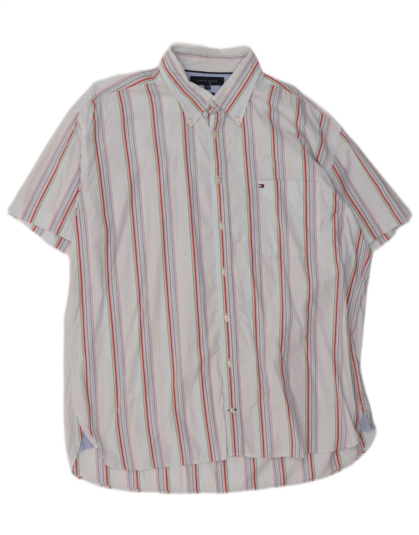 TOMMY HILFIGER Ανδρικό κοντομάνικο πουκάμισο 2XL πολύχρωμο βαμβακερό ριγέ