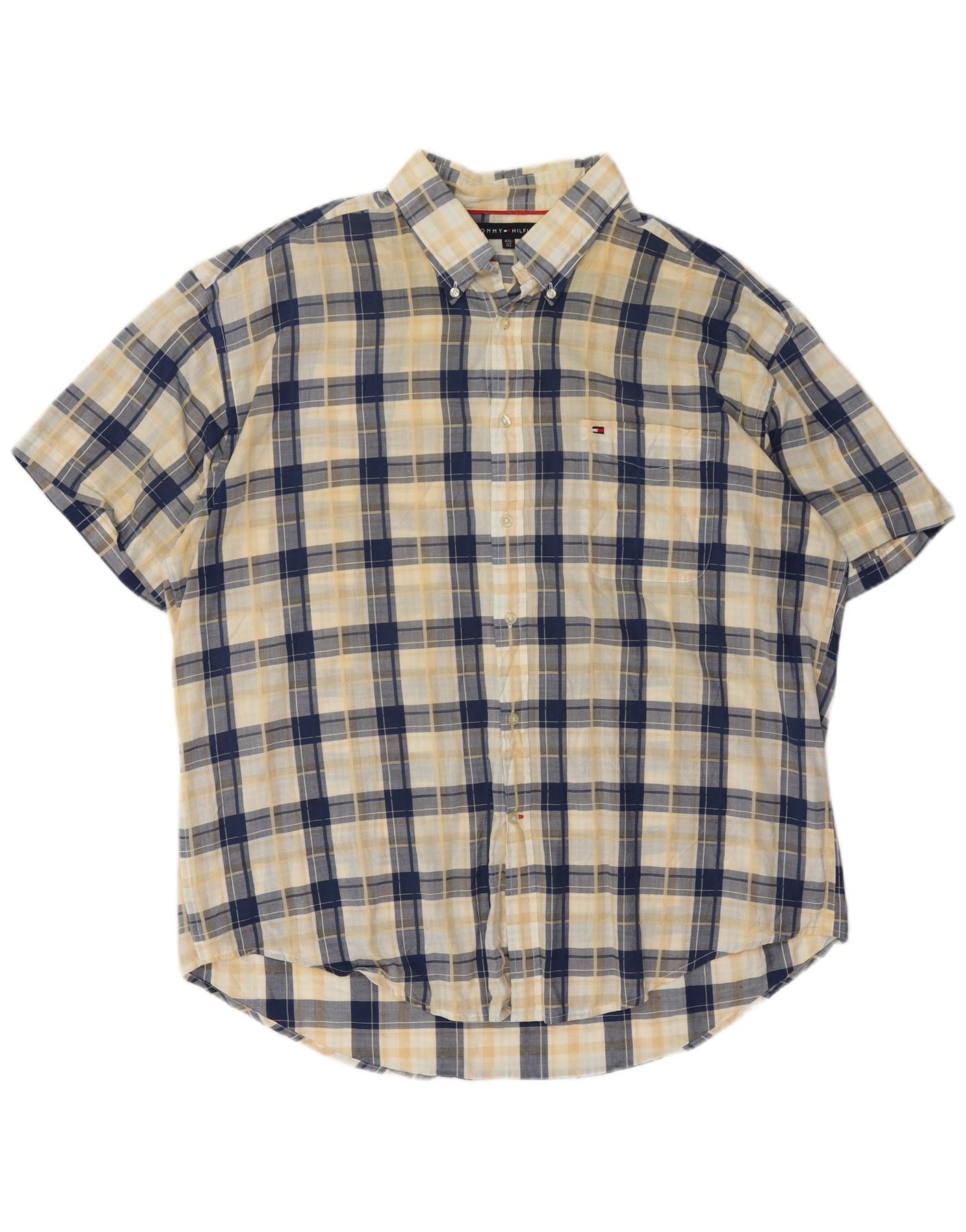 TOMMY HILFIGER Ανδρικό κοντομάνικο πουκάμισο 2XL Navy Blue Check Cotton