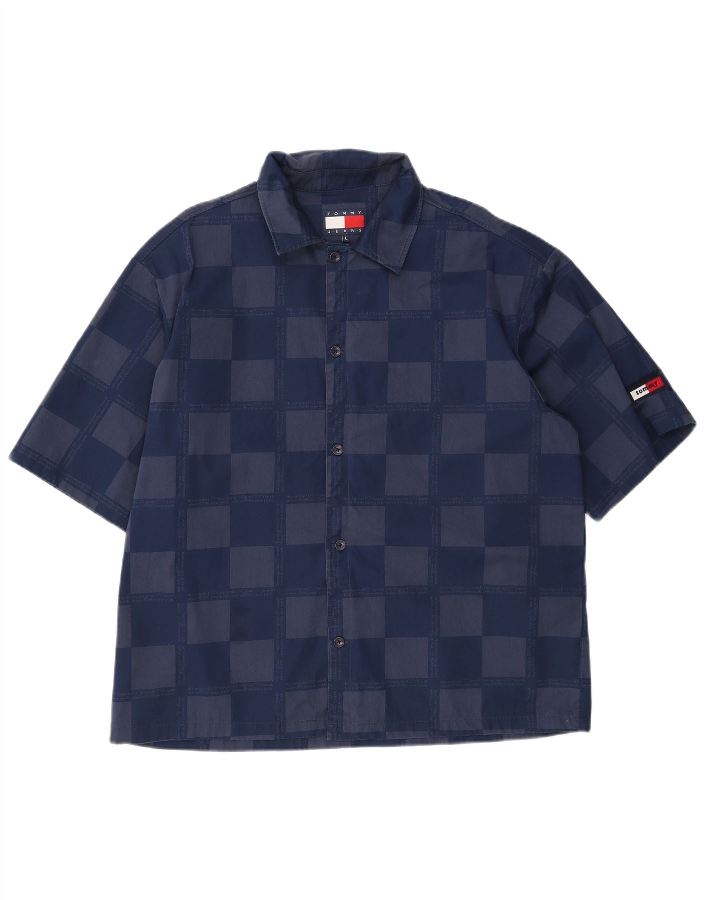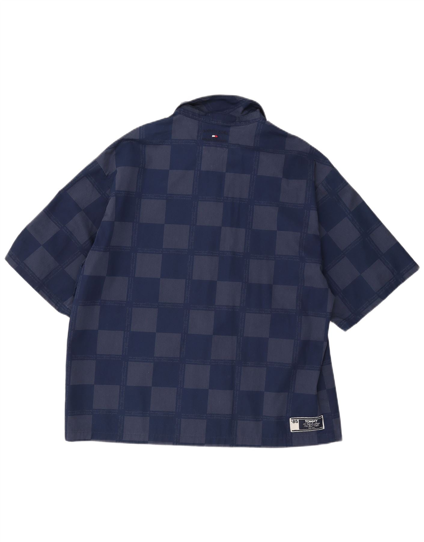 TOMMY HILFIGER Ανδρικό κοντομάνικο πουκάμισο μεγάλο μπλε ναυτικό γεωμετρική βισκόζη