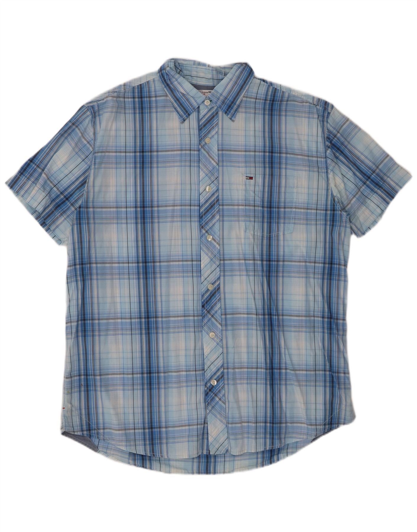 TOMMY HILFIGER Ανδρικό κοντομάνικο πουκάμισο XL Μπλε βαμβακερό