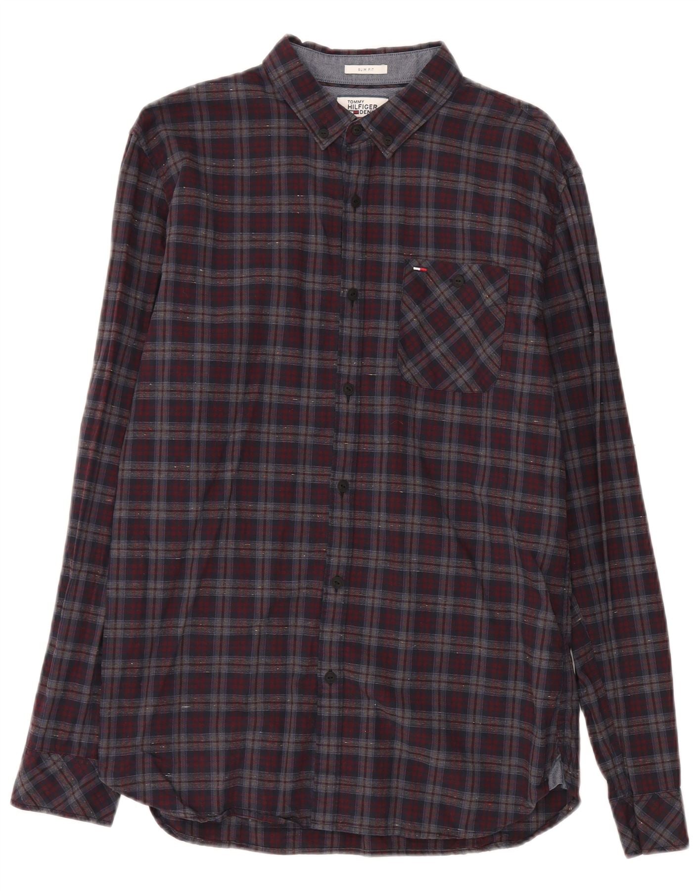Ανδρικό φανελένιο πουκάμισο Tommy Hilfiger Slim Fit, μεγάλο κόκκινο βαμβακερό