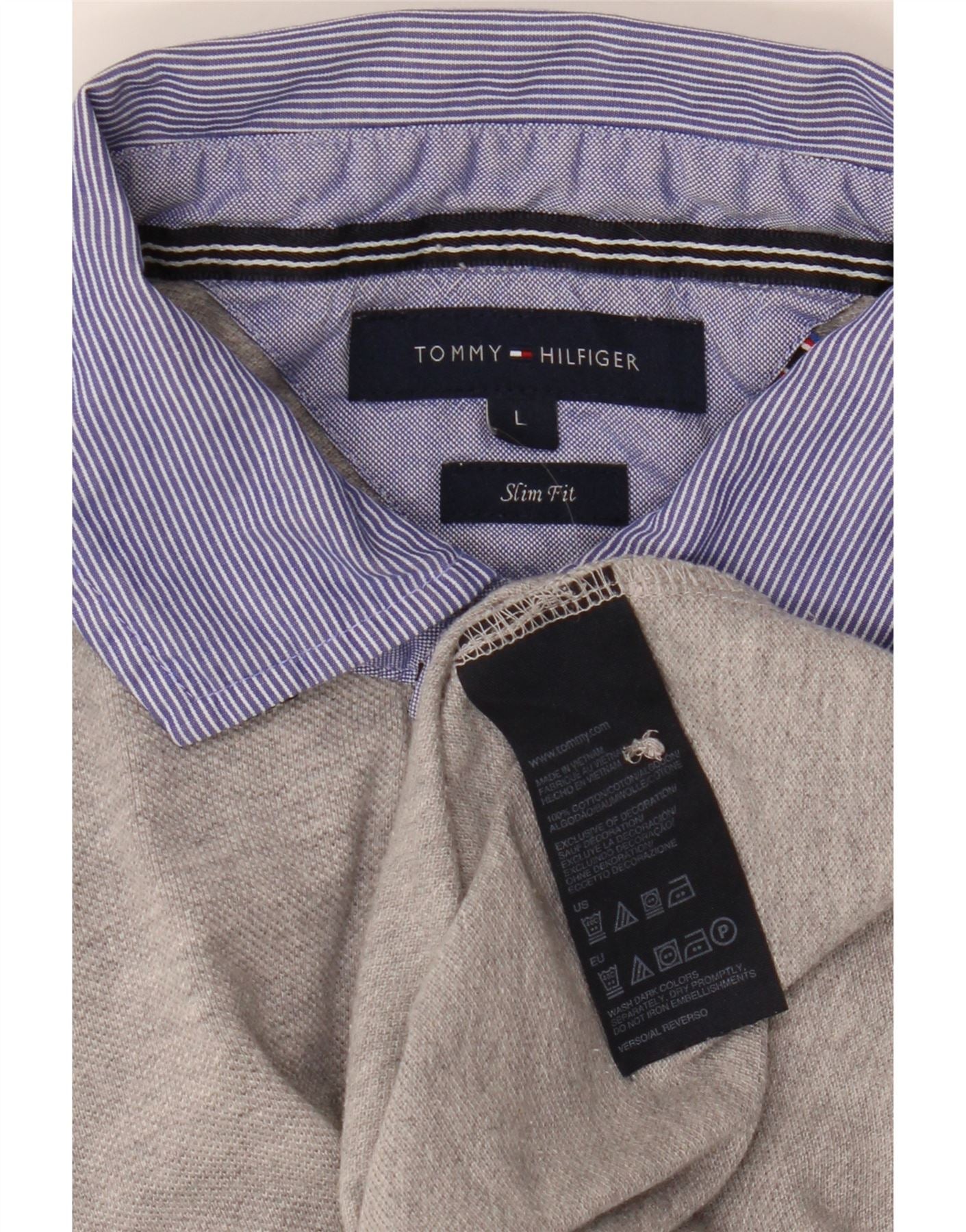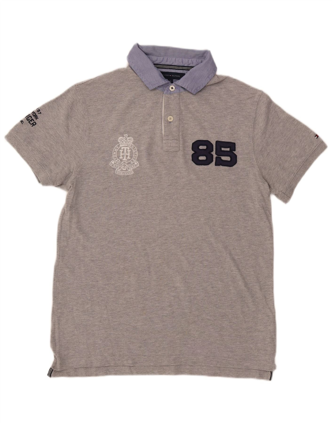 TOMMY HILFIGER Ανδρικό γραφικό μπλουζάκι πόλο με λεπτή εφαρμογή, μεγάλο γκρι βαμβακερό