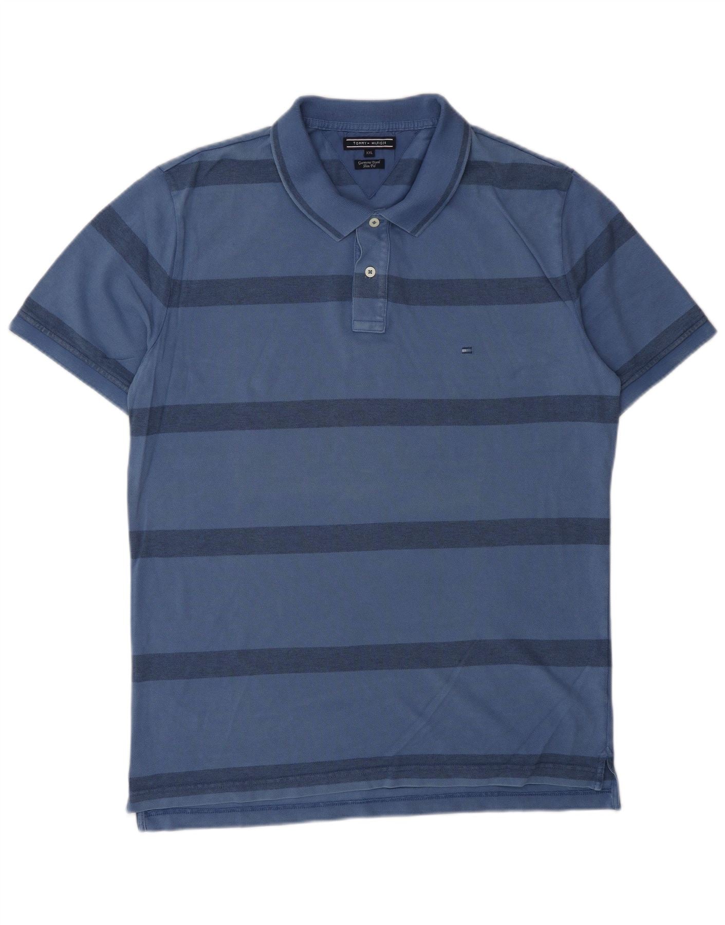 TOMMY HILFIGER Ανδρικό μπλουζάκι πόλο με λεπτή εφαρμογή 2XL μπλε ριγέ βαμβακερό