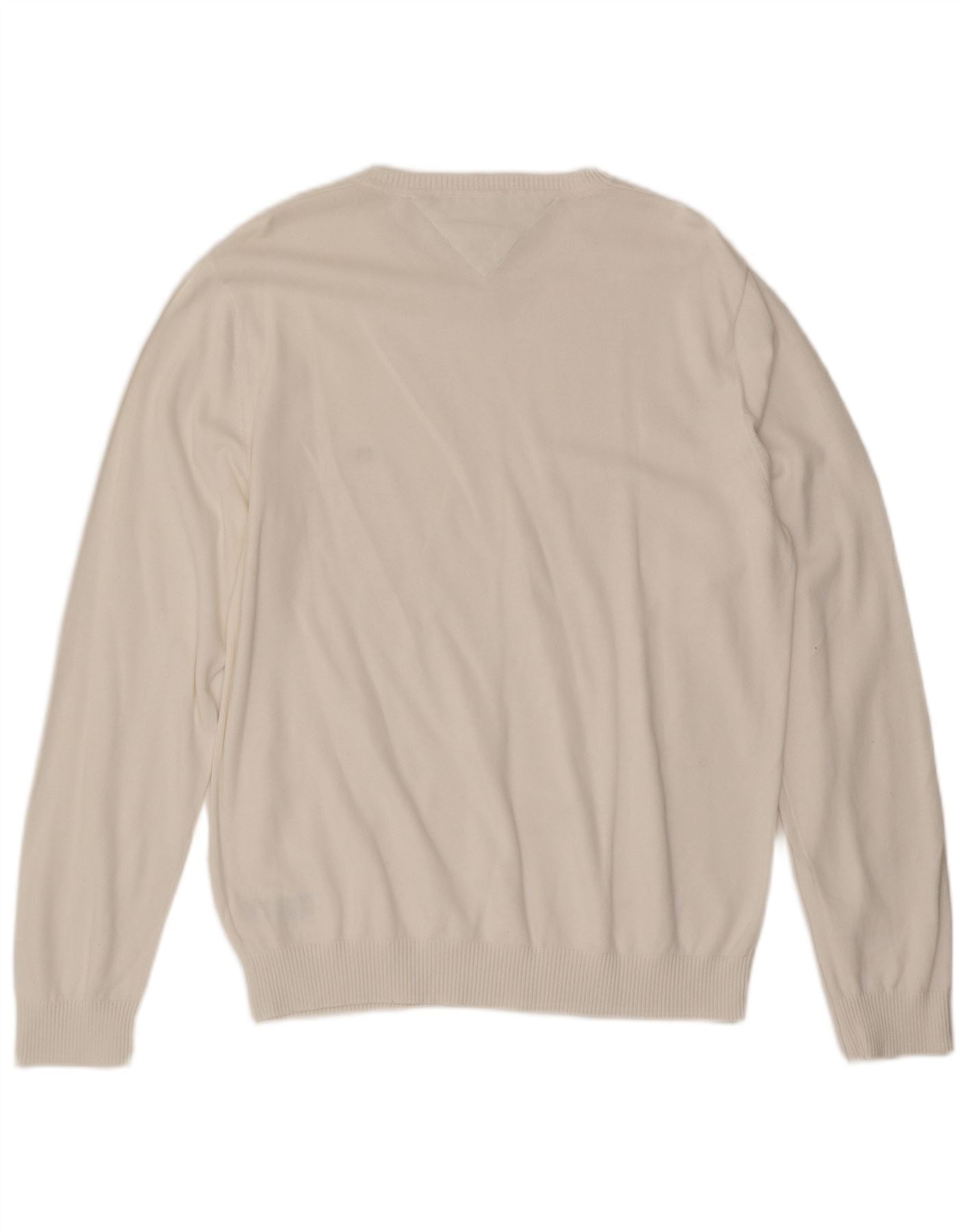 Ανδρικό πουλόβερ Tommy Hilfiger με V λαιμόκοψη XL λευκό βαμβακερό κλασικό