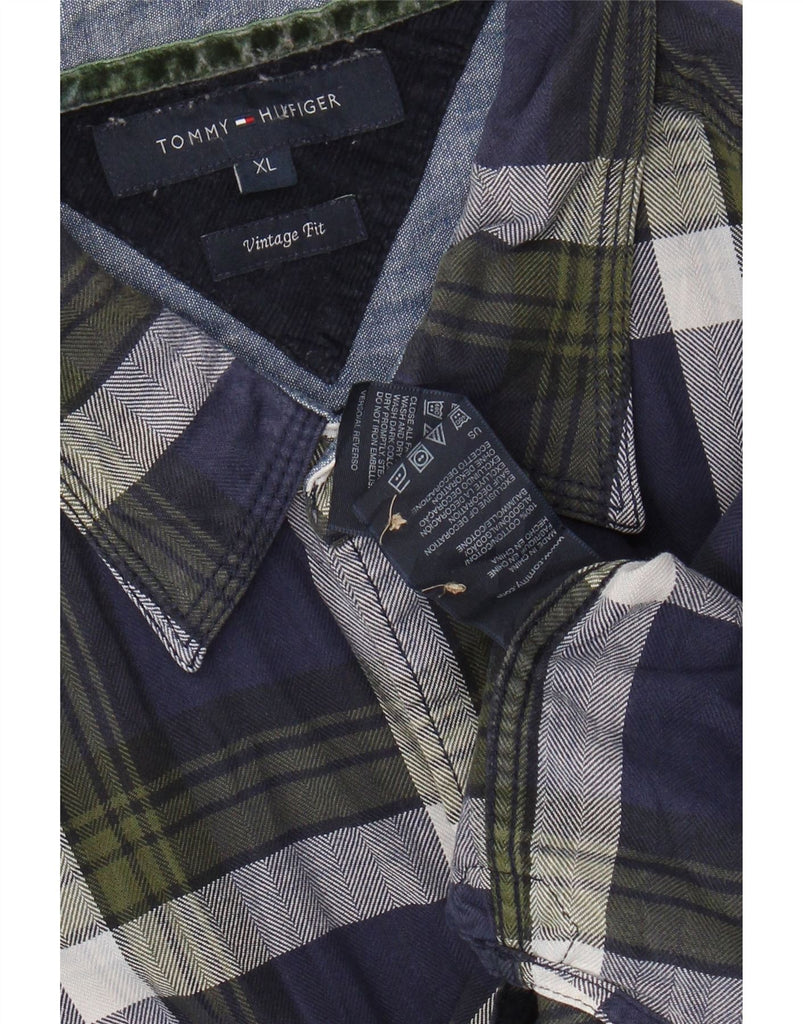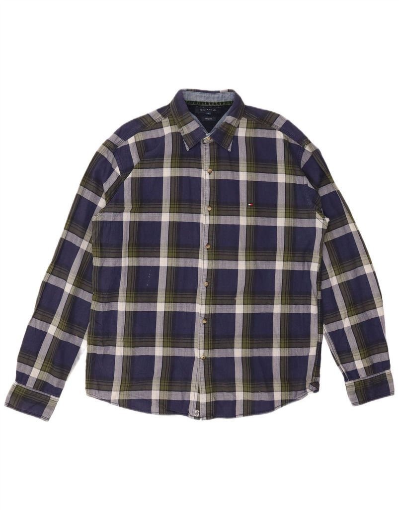TOMMY HILFIGER Ανδρικό πουκάμισο Vintage Φανελένιο XL Navy Blue Check Cotton