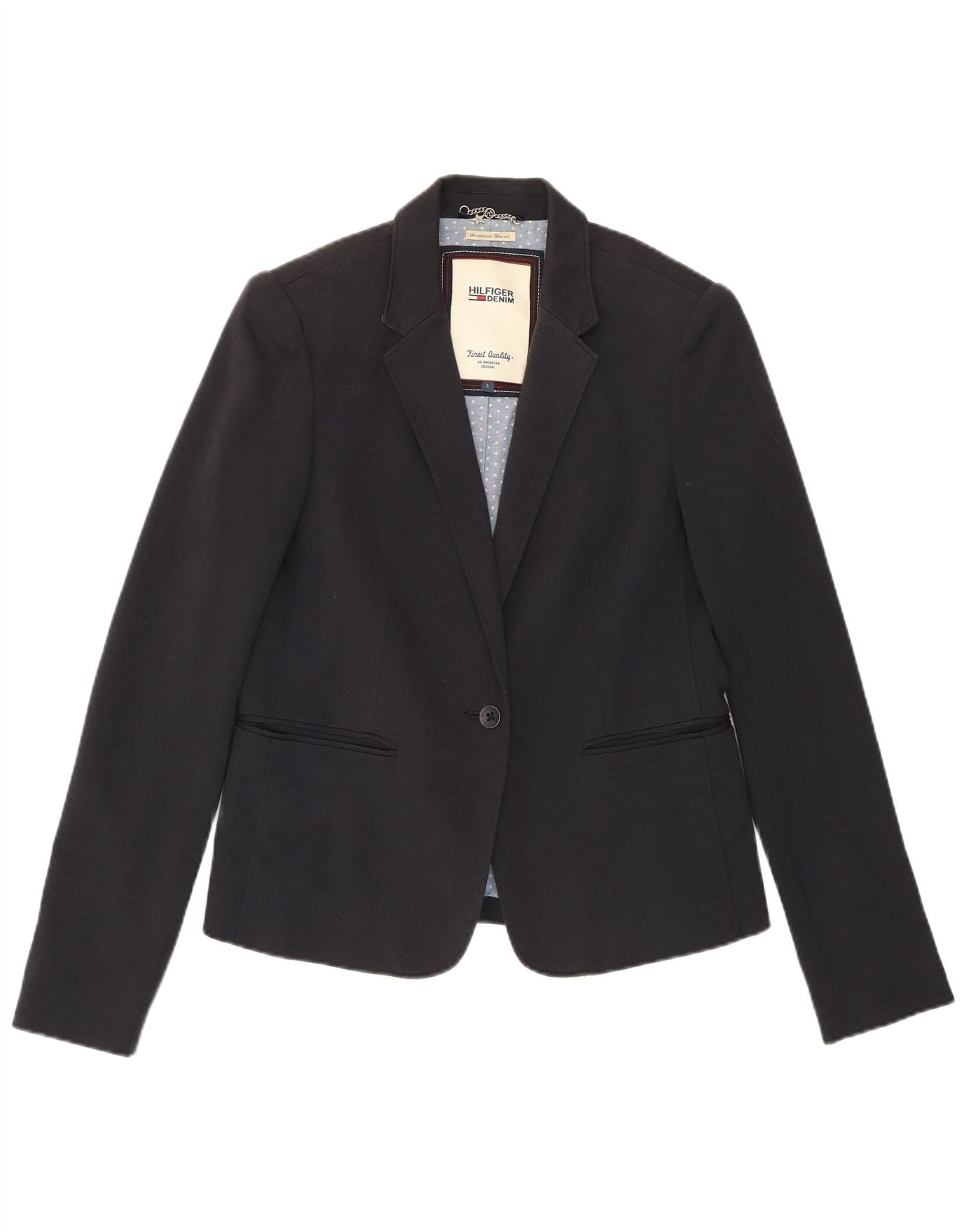 TOMMY HILFIGER Γυναικείο σακάκι 1 κουμπιού σακάκι UK 14 μεγάλο μπλε από βαμβάκι