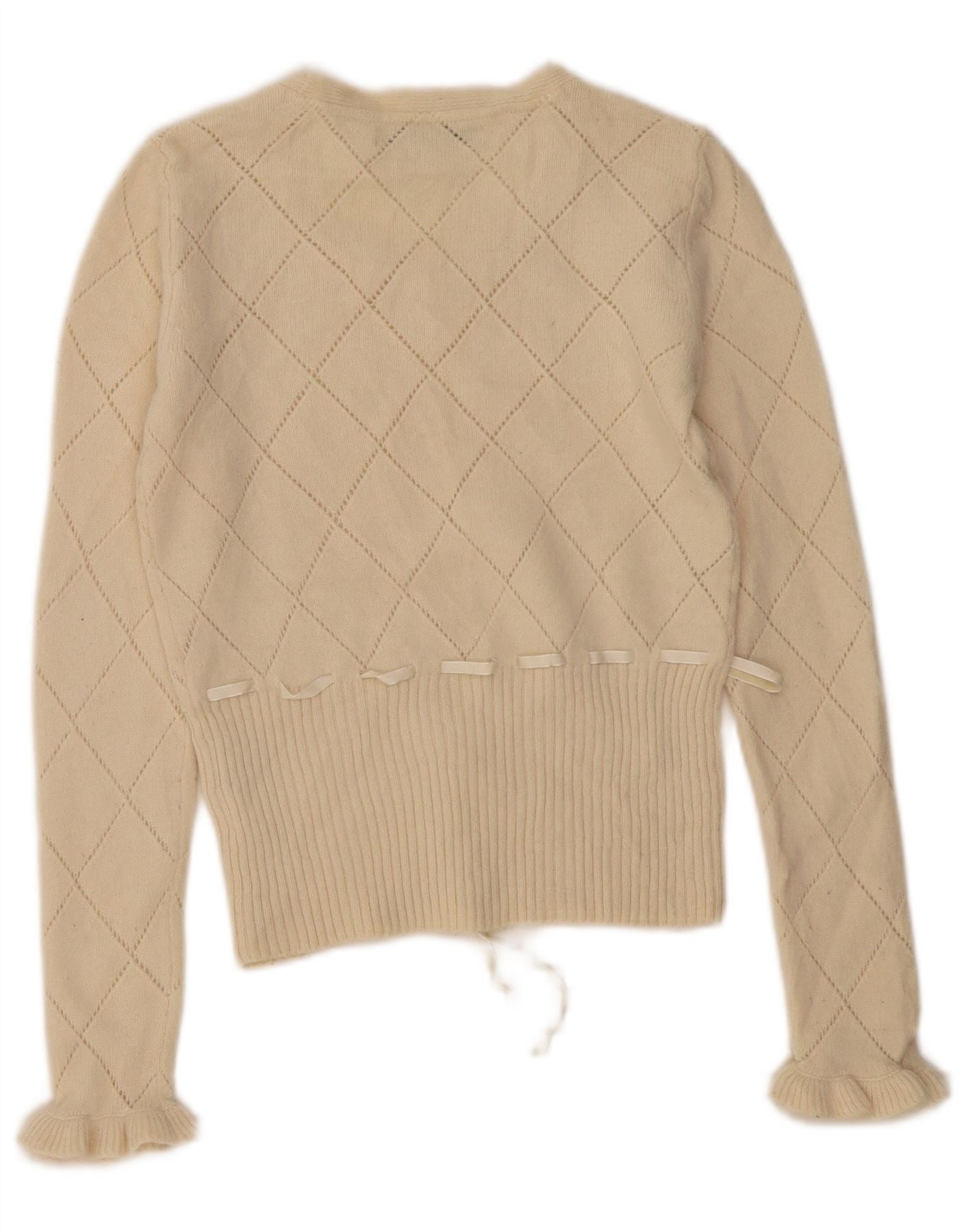 TOMMY HILFIGER Womens Boat Neck Jumper Sweater UK 10 Small Off White