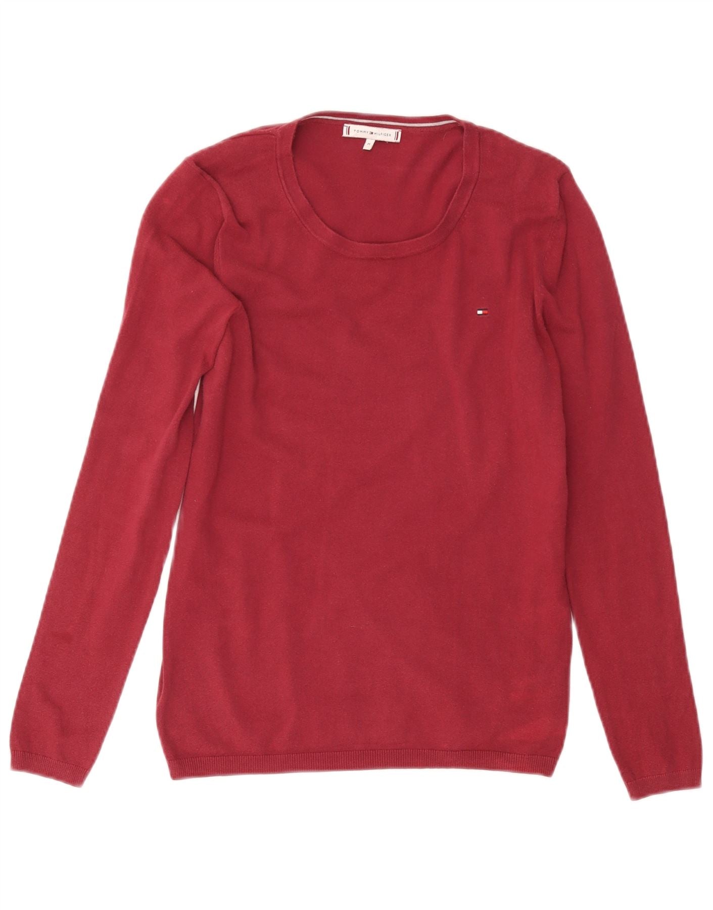 TOMMY HILFIGER Womens Boat Neck Jumper Sweater UK 14 Medium Burgundy