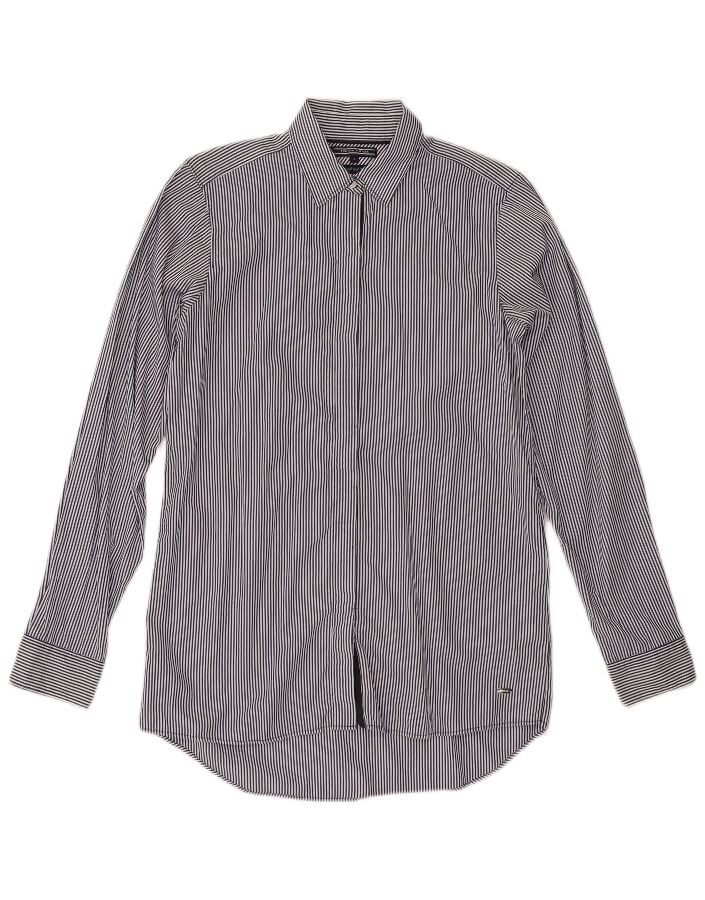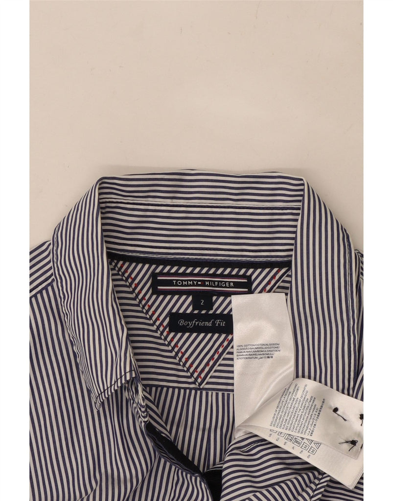 TOMMY HILFIGER Womens Boyfriend Fit Shirt US 2 XS Navy Blue Pinstripe