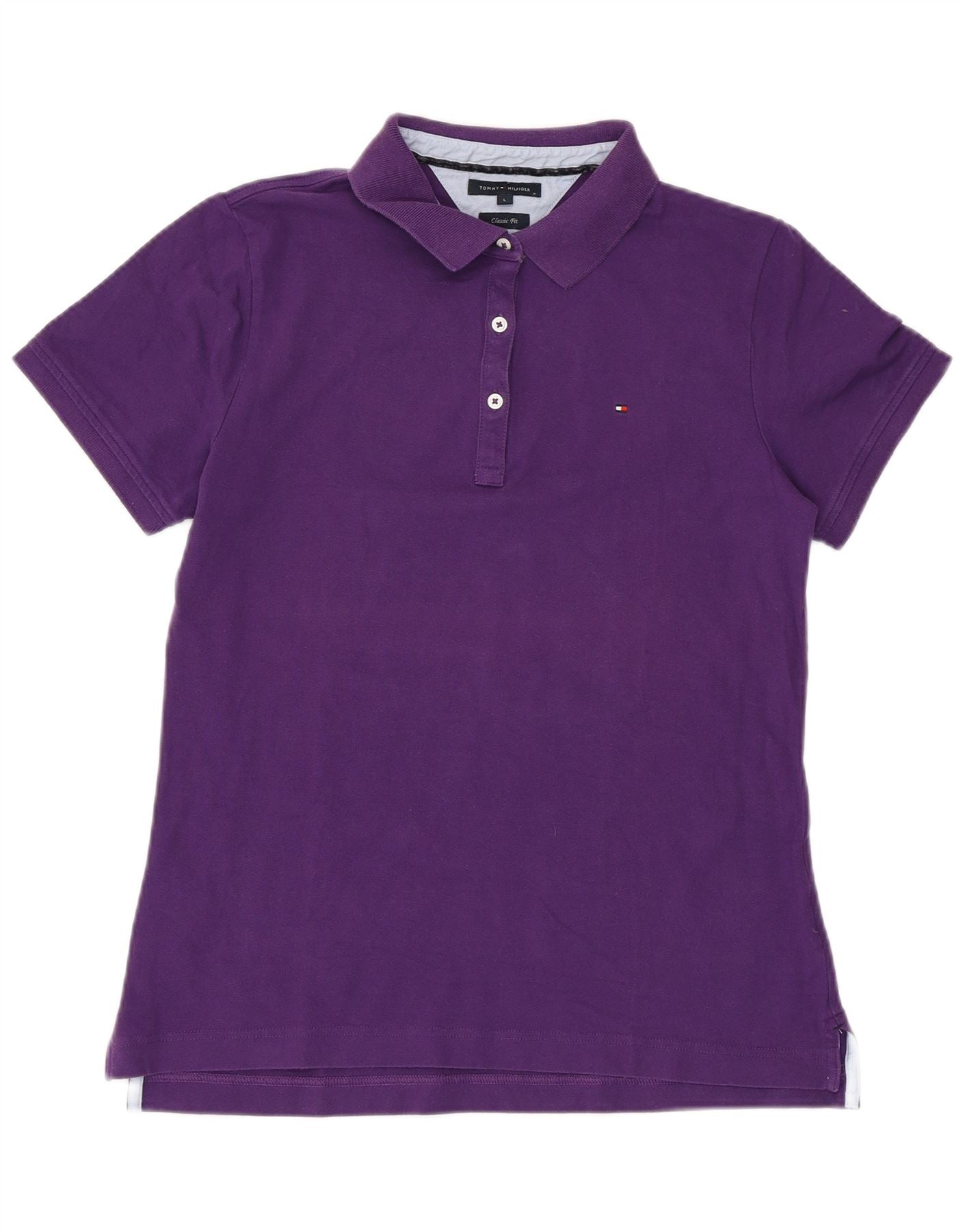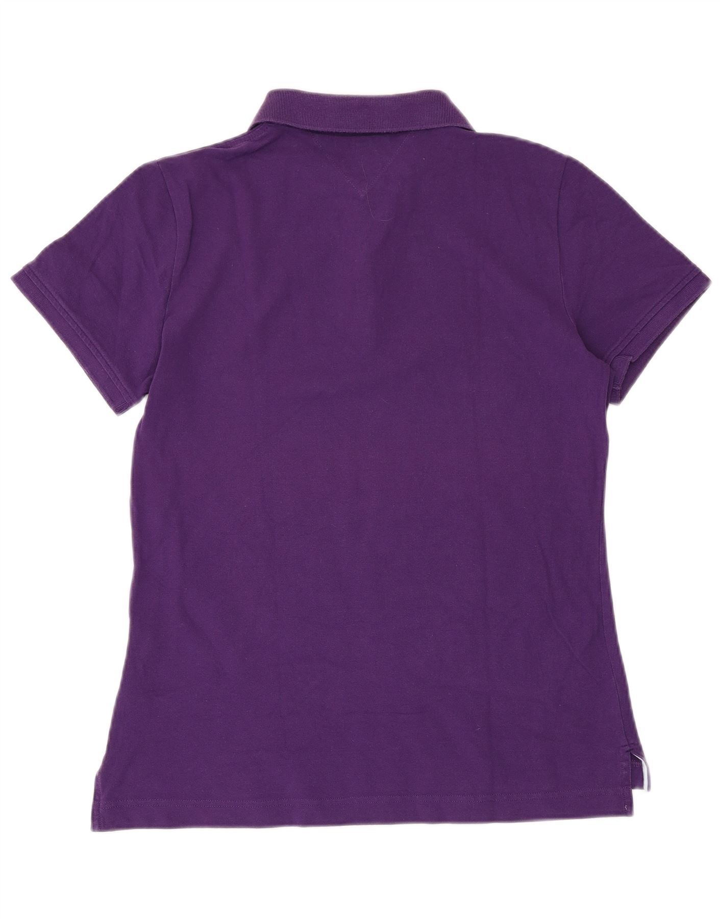TOMMY HILFIGER Γυναικείο μπλουζάκι πόλο σε κλασική εφαρμογή UK 14 μεγάλο μωβ βαμβακερό