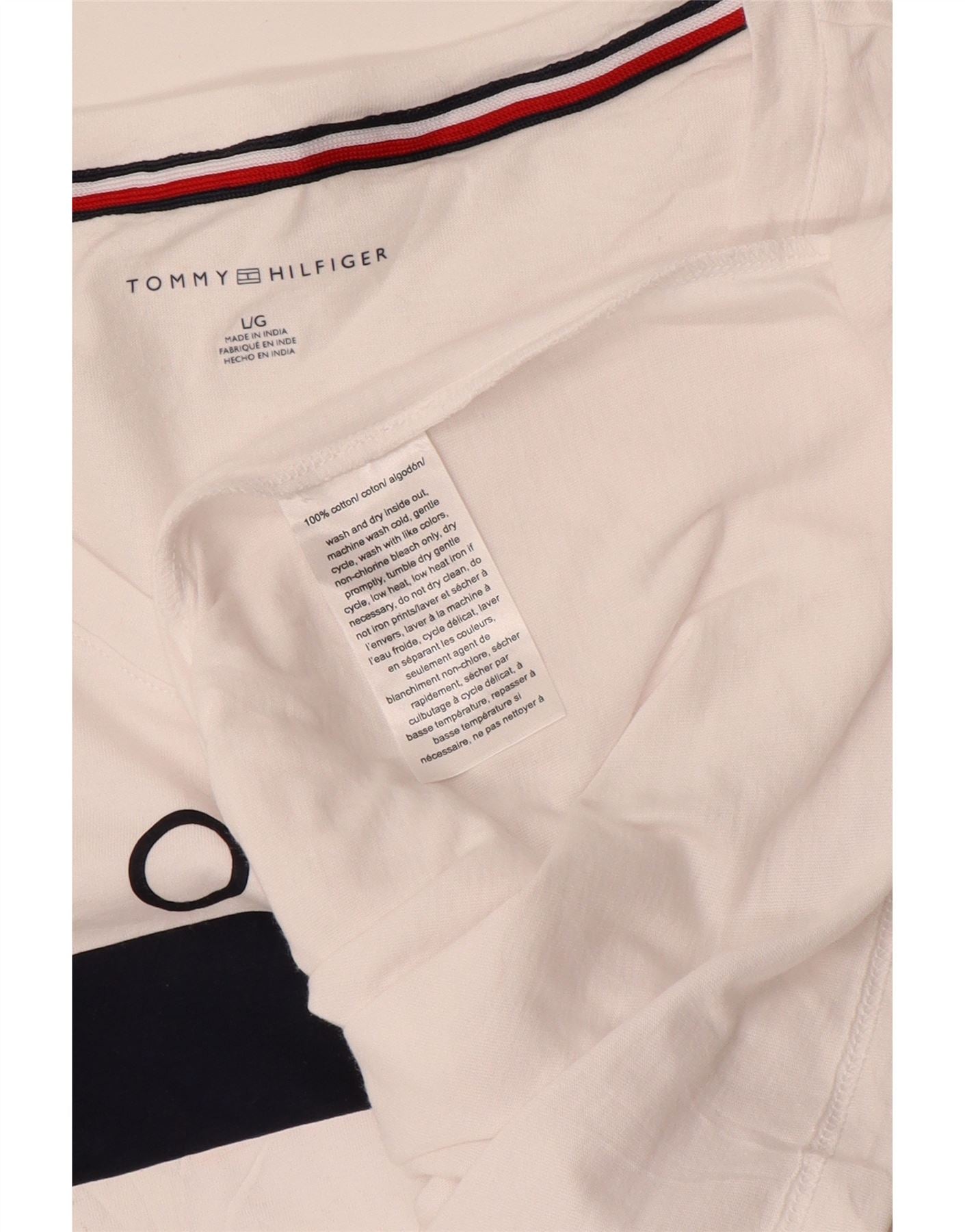 Γυναικείο γραφικό μπλουζάκι TOMMY HILFIGER Top UK 16 μεγάλο λευκό βαμβακερό