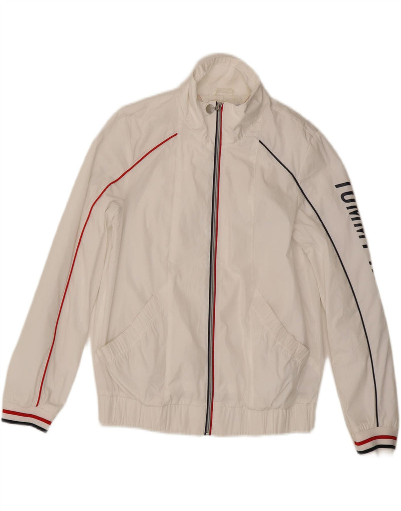 TOMMY HILFIGER Γυναικεία αθλητική φόρμα γραφικών Top Jacket UK 10 Small White