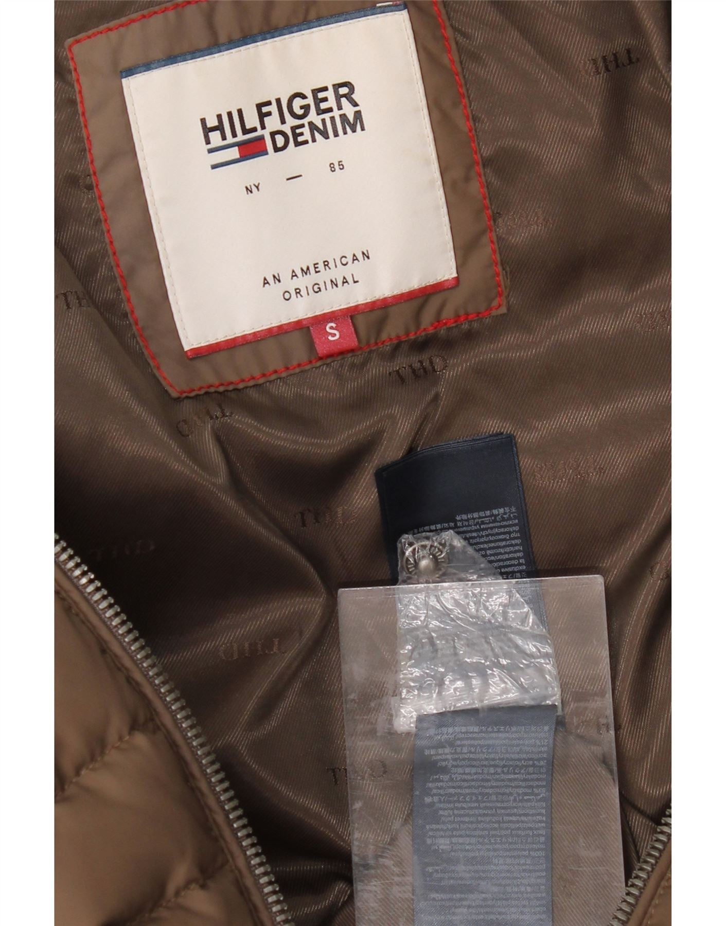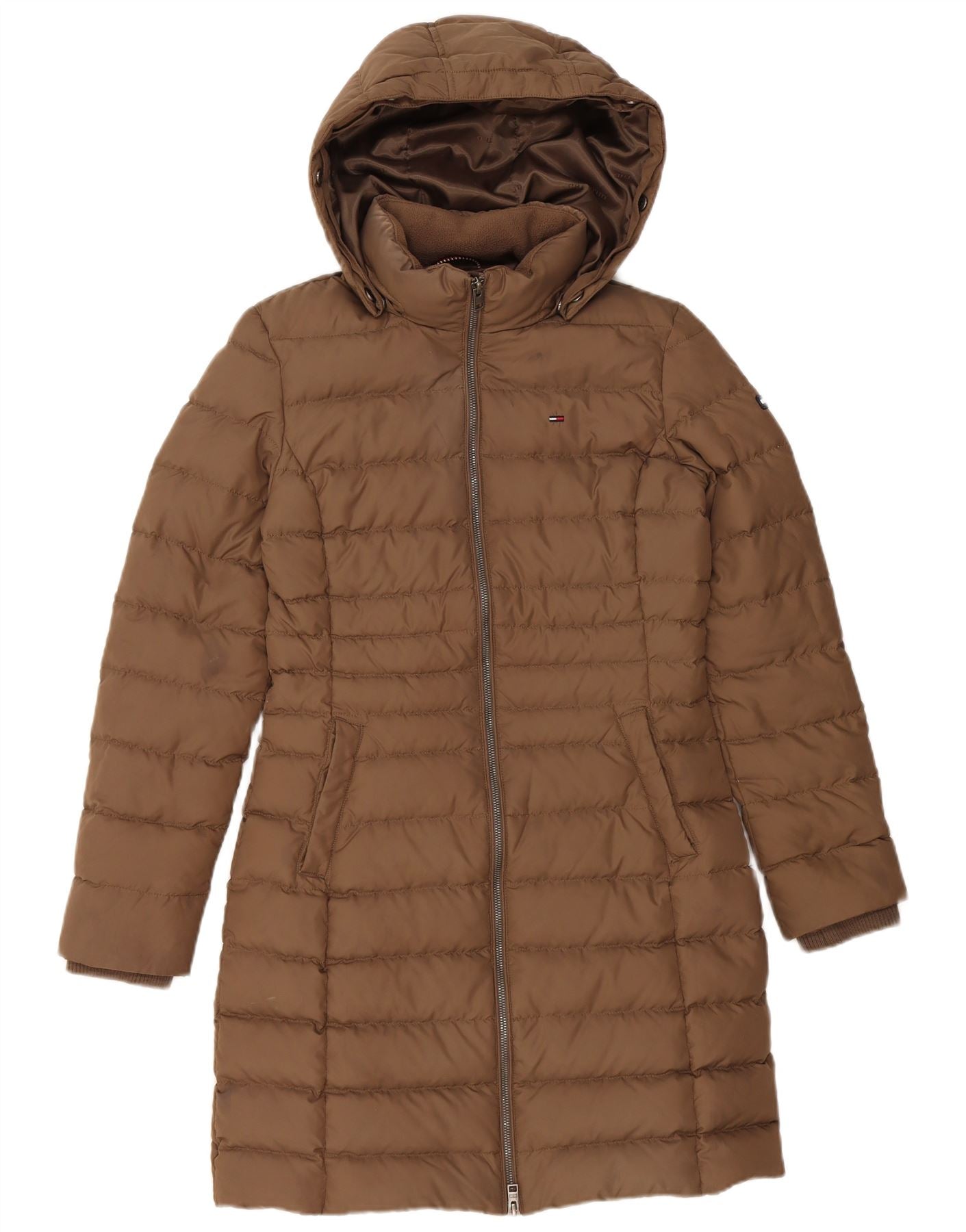 TOMMY HILFIGER Womens Hooded Padded Coat UK 10 Small Brown Polyester