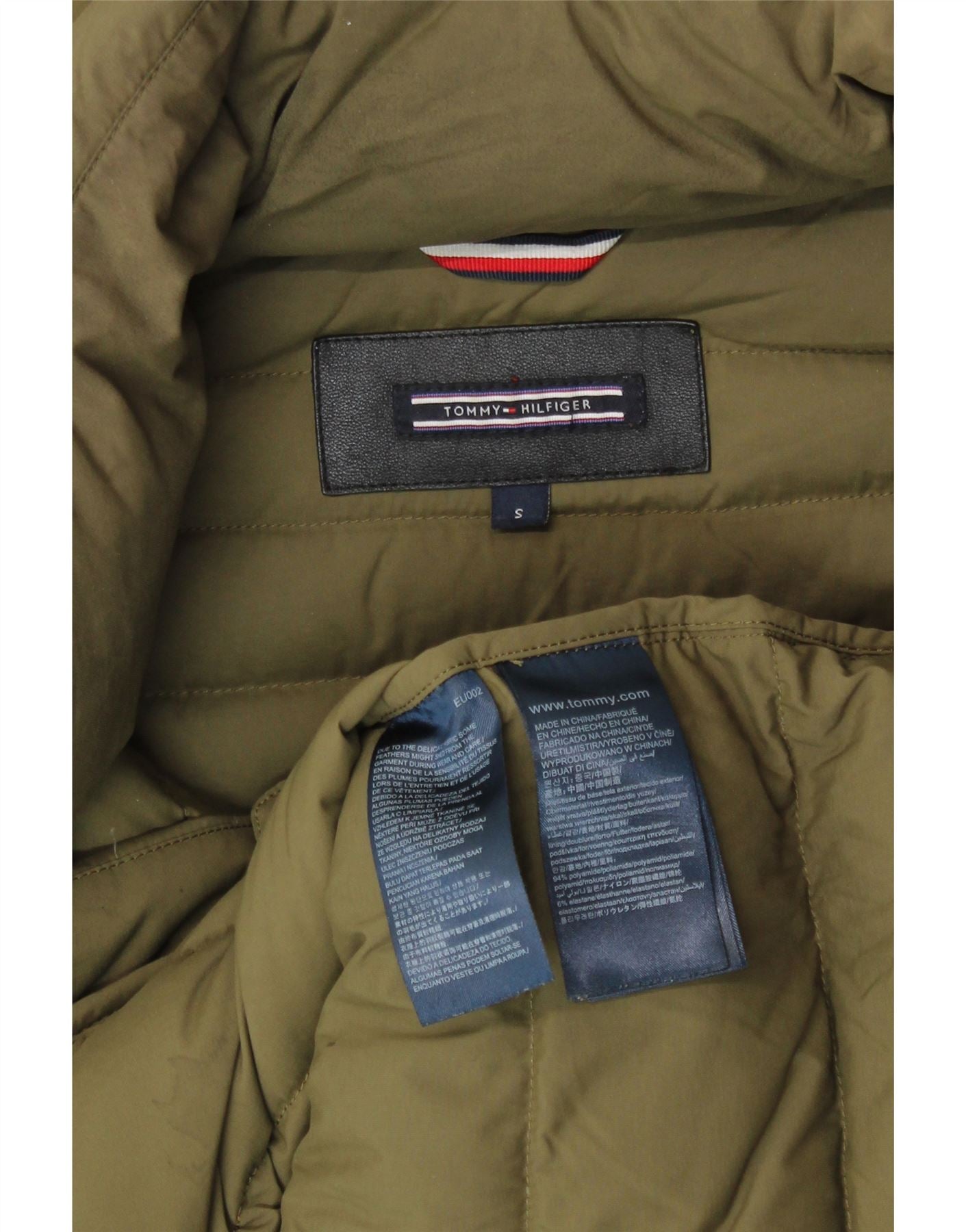 TOMMY HILFIGER Womens Hooded Padded Coat UK 10 Small Khaki Polyamide