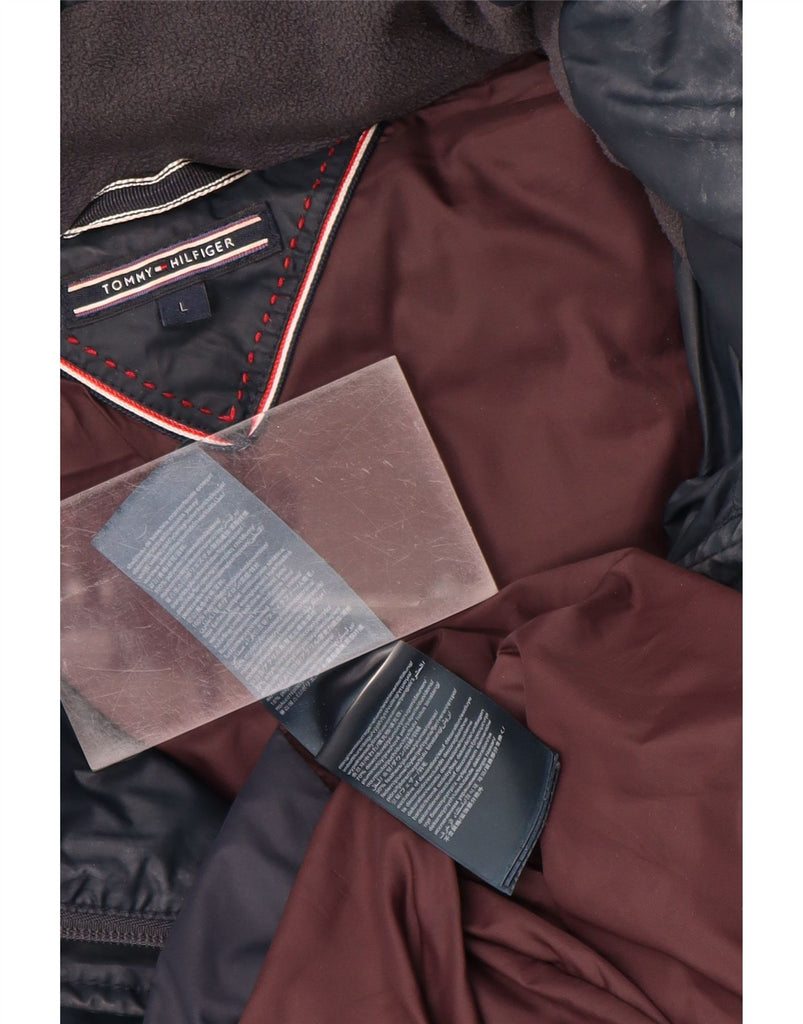 TOMMY HILFIGER Womens Hooded Padded Coat UK 14 Large Navy Blue Polyester