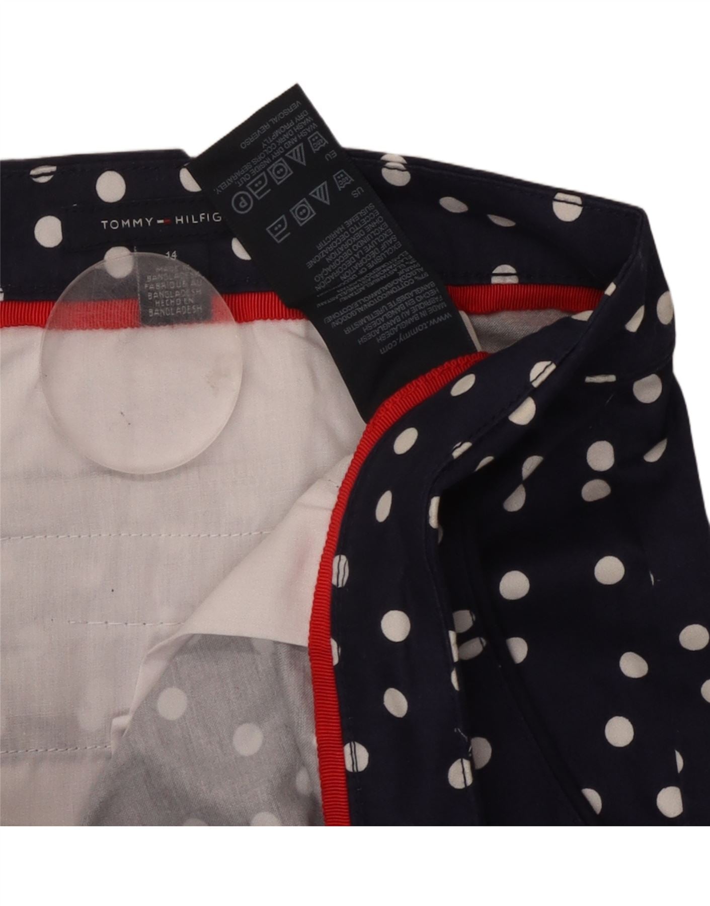 TOMMY HILFIGER Womens Pencil Skirt US 14 XL W36 Navy Blue Polka Dot Cotton