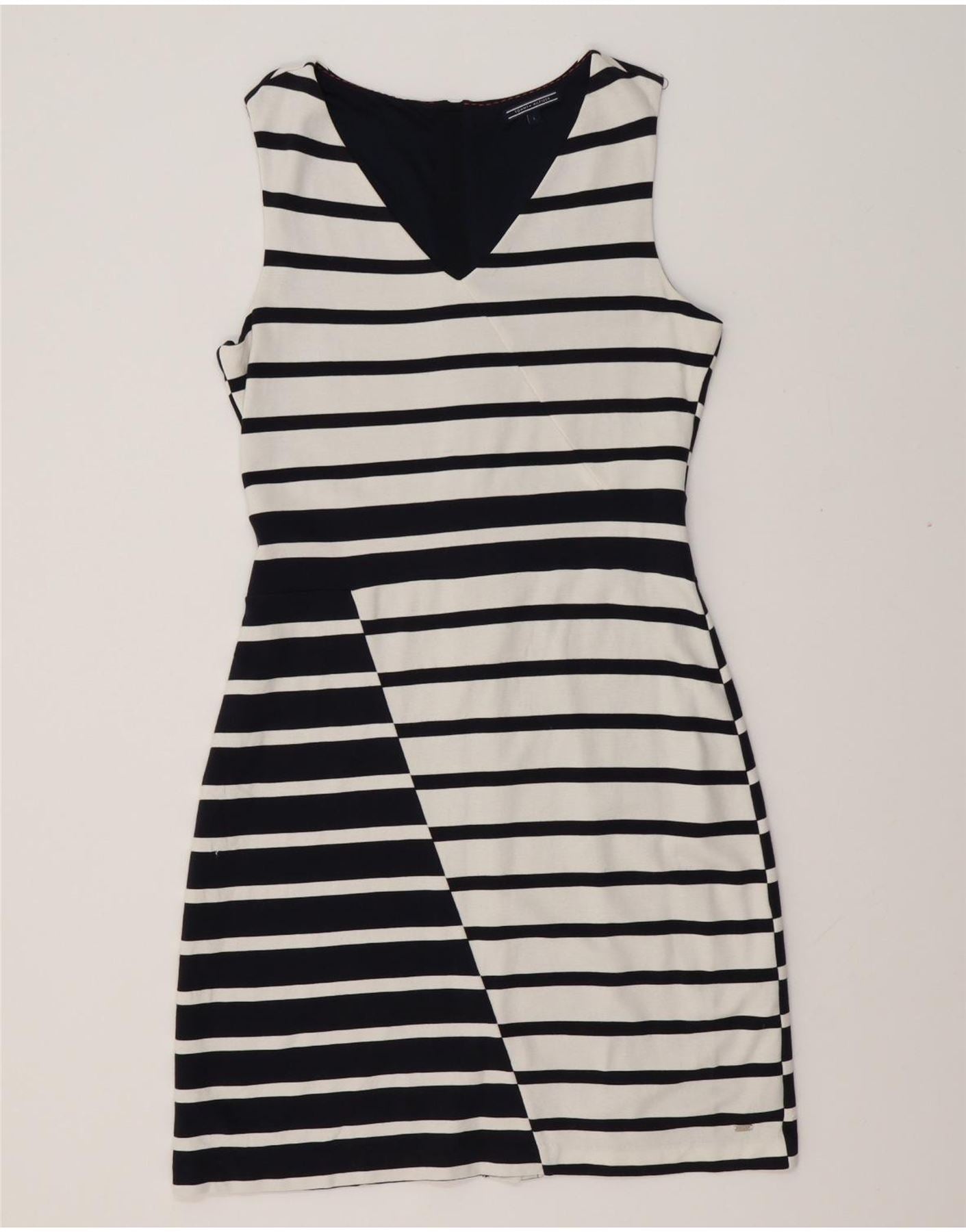 TOMMY HILFIGER Γυναικείο αμάνικο φόρεμα UK 14 μεγάλο λευκό ριγέ