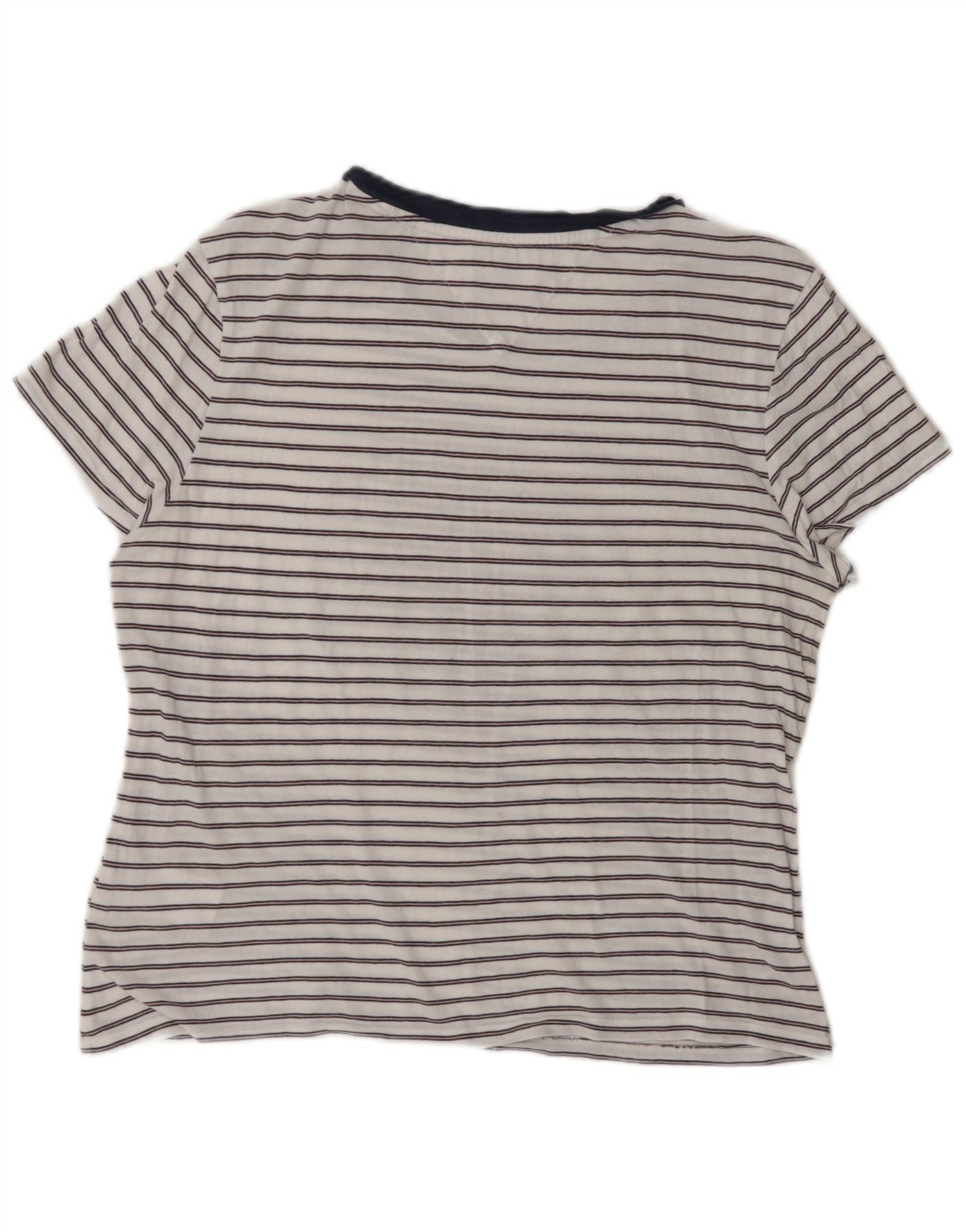 TOMMY HILFIGER Womens T-Shirt Top UK 14 Medium White Striped Cotton