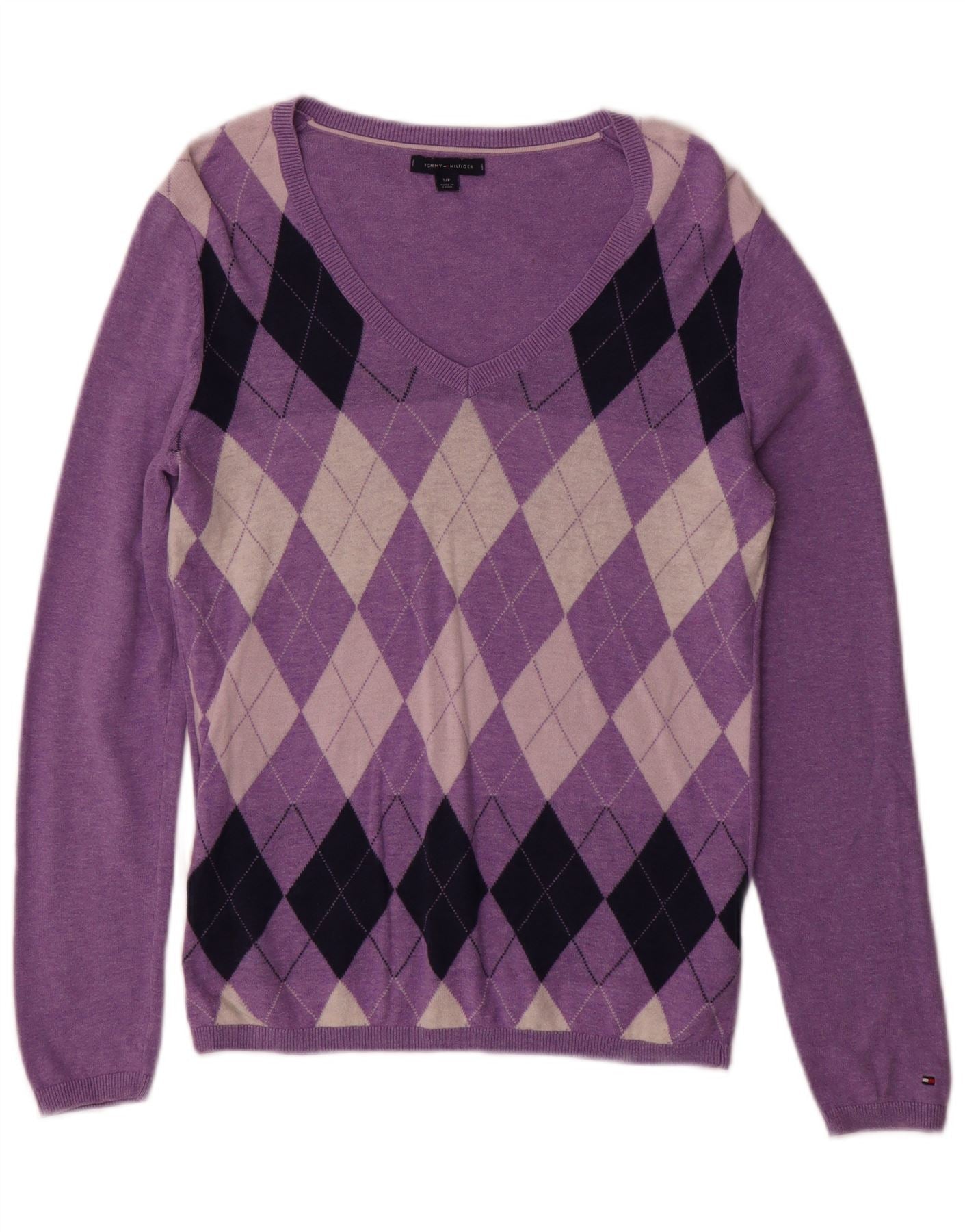 TOMMY HILFIGER Γυναικείο πουλόβερ με λαιμόκοψη με V λαιμόκοψη UK 10 Small Purple