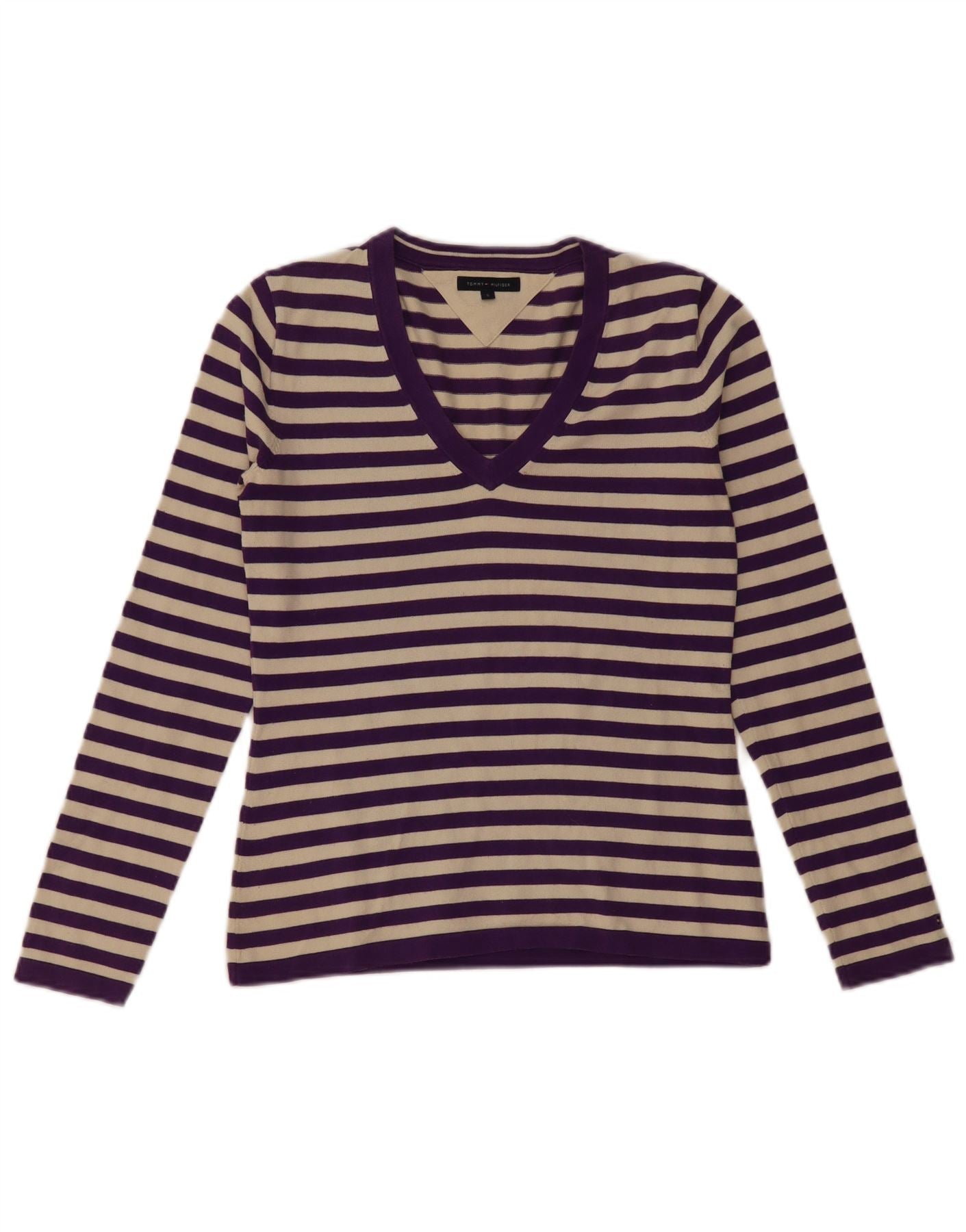 TOMMY HILFIGER Γυναικείο πουλόβερ με λαιμόκοψη με V λαιμόκοψη UK 10 Small Purple ριγέ